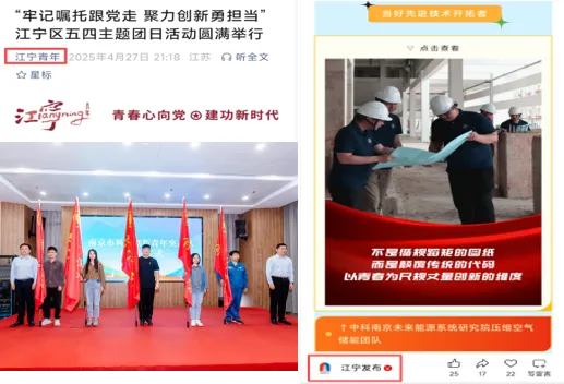 4月-5月,叶轮机械流动综合试验平台团队入选南京市重点领域青年突击队、压缩空气储能团队入选区级五四青年典型宣传微刊。