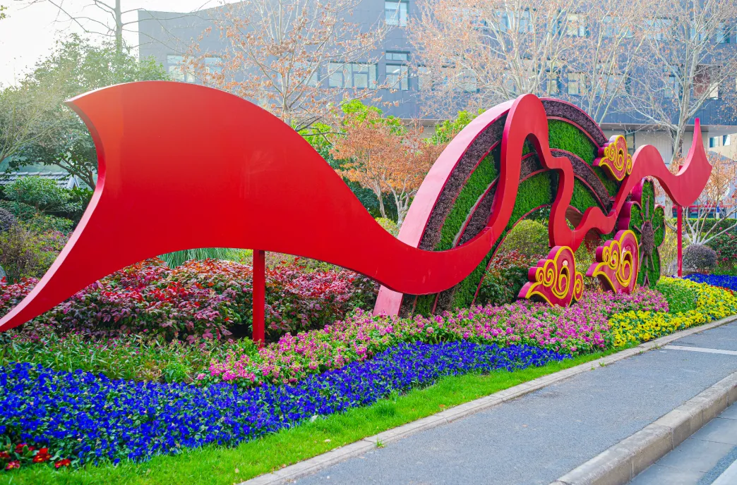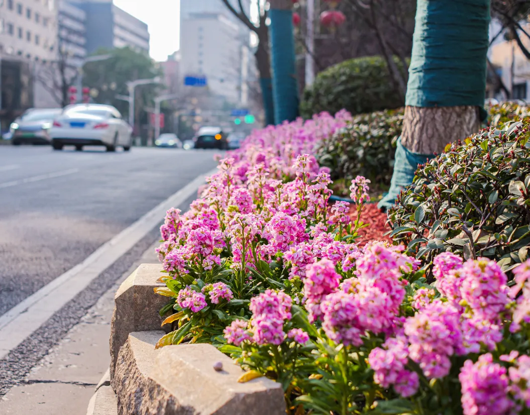 花卉满园铺锦绣,
