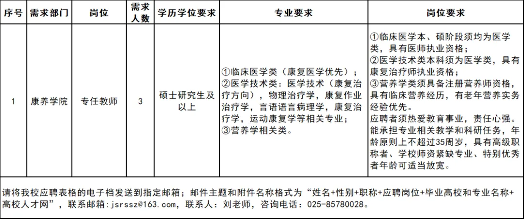 2、报名方式:应聘人员填写《南京审计大学金审学院招聘报名表》(见附件2),并将报名表格通过附件以word格式发送至联系邮箱。邮件主题和附件名称格式规范统一写成“姓名+性别+职称+应聘岗位+毕业高校和专业名称+高校人才网”,联系邮箱:jsrssz@163.com,联系人:刘老师,联系电话:025-85780028。【快捷投递:点击左下角“阅读原文”→跳转至网页→点击“立即申请/简历投递”→投递对应职位】