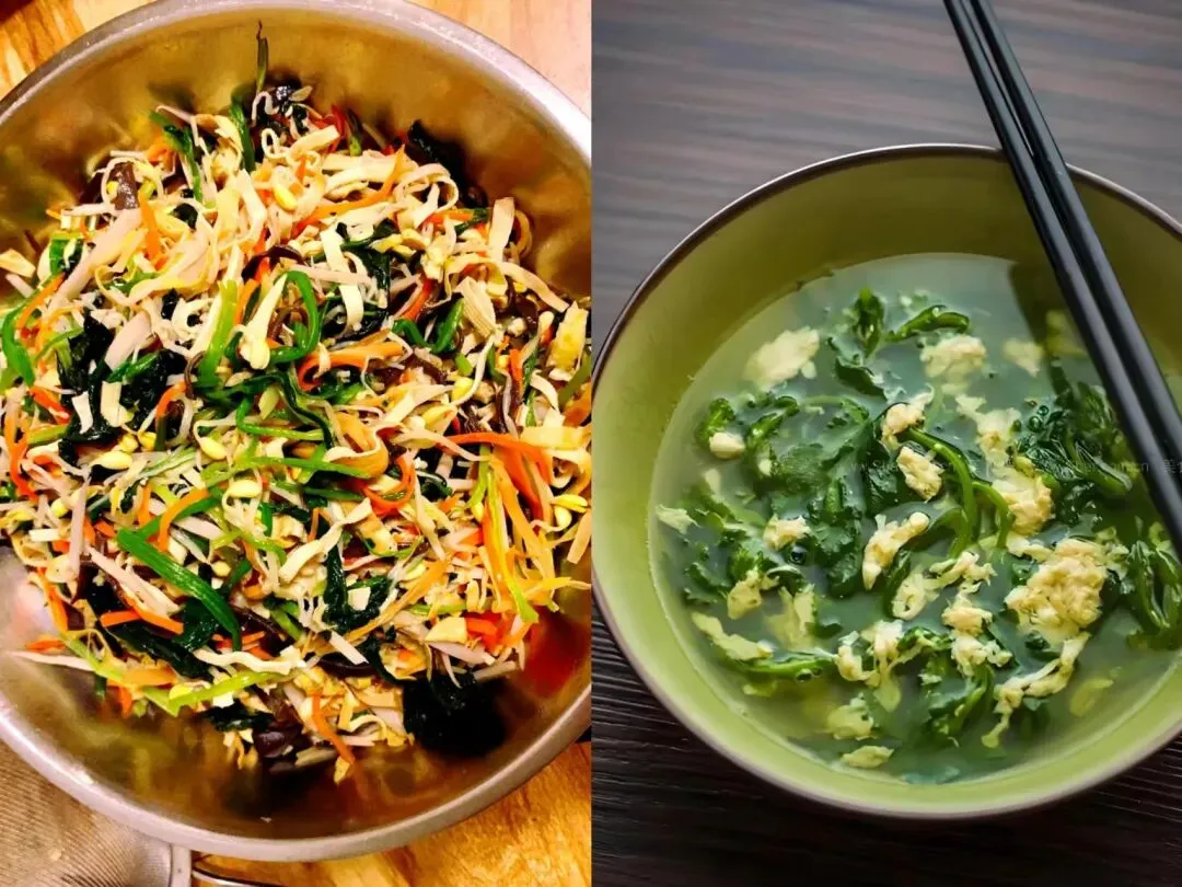 她手边总还备着一大盆“十样菜”——黄豆芽、胡萝卜丝、木耳、黄花菜、藕片、雪里蕻、芹菜、千张、香菇、荠菜,十样素炒,一样不能少,寓意着“十全十美”。她说,这是“素净清爽地跨个年”。