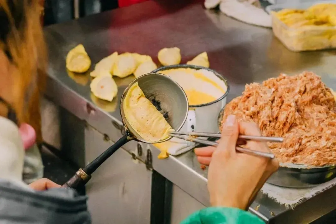 小时候总爱看家里的长辈摊蛋饺,拿着小勺在火上轻轻一转,一张薄薄的蛋皮就成型了,再填上切碎的菠菜和鲜肉馅,捏成元宝的样子。