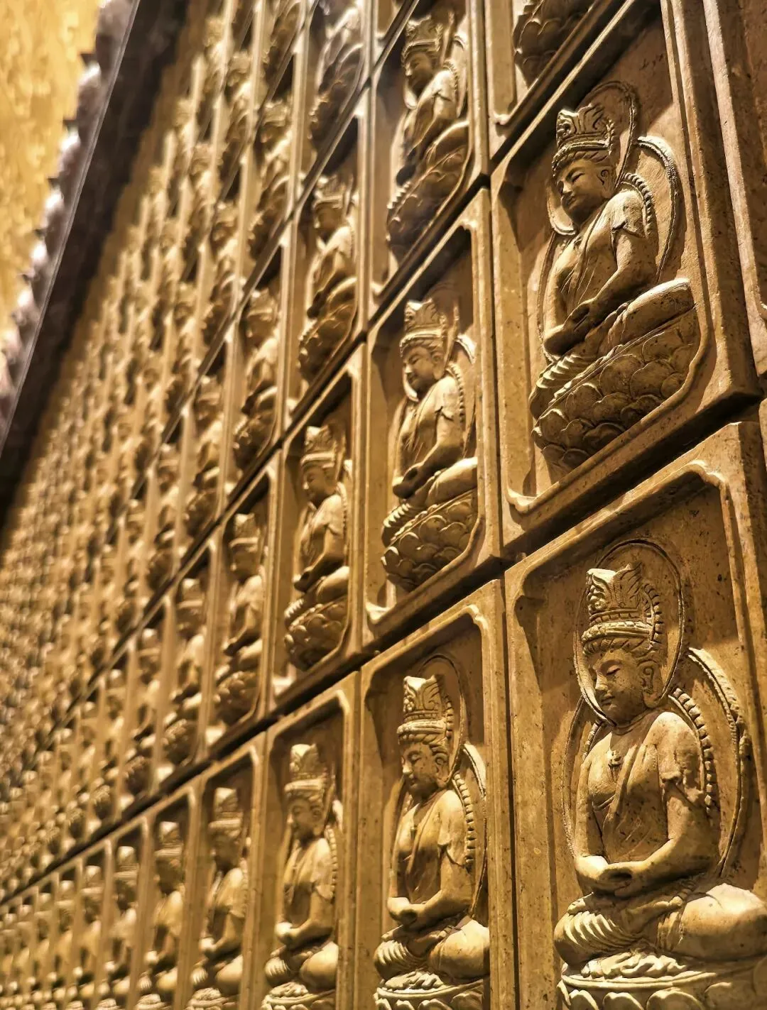 千尊佛龛静静伫立,浮雕长廊延伸向远方,