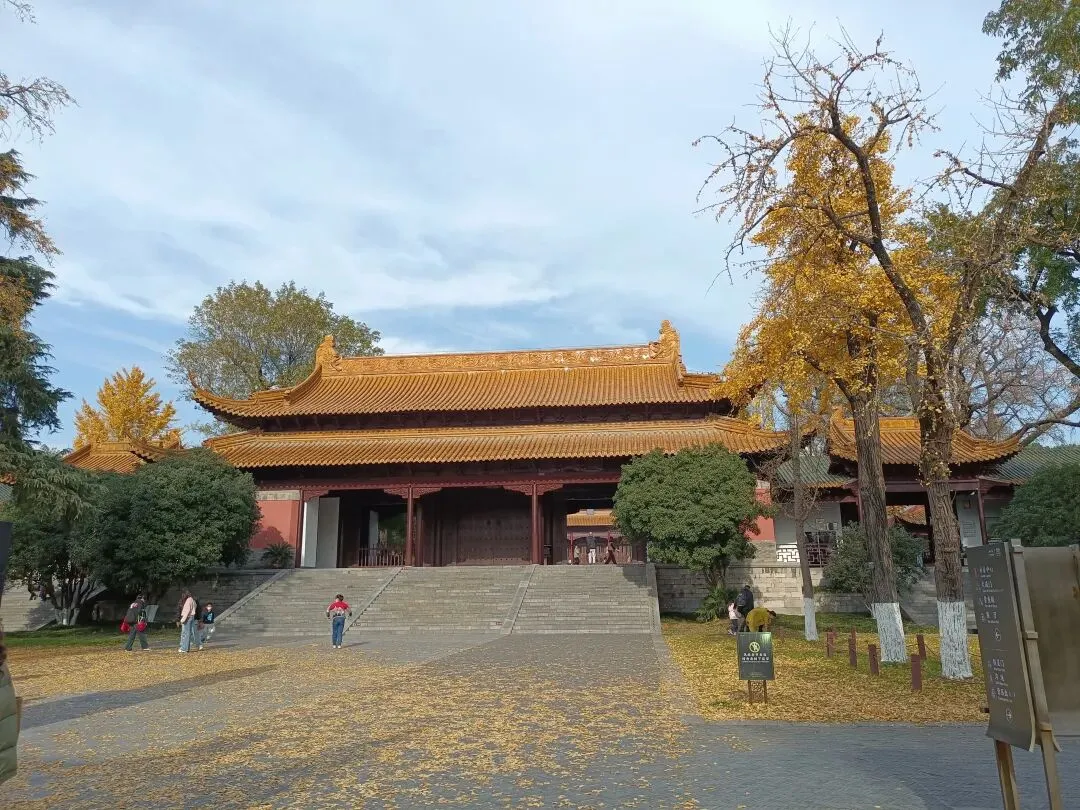 院中几株高大的银杏树,一到深秋便美出天际 —— 澄澈的蓝天,金黄的银杏叶,搭配上宫殿鎏金的屋顶,天地间仿佛被揉进了一抹温柔的金光,一眼便让人沉醉。