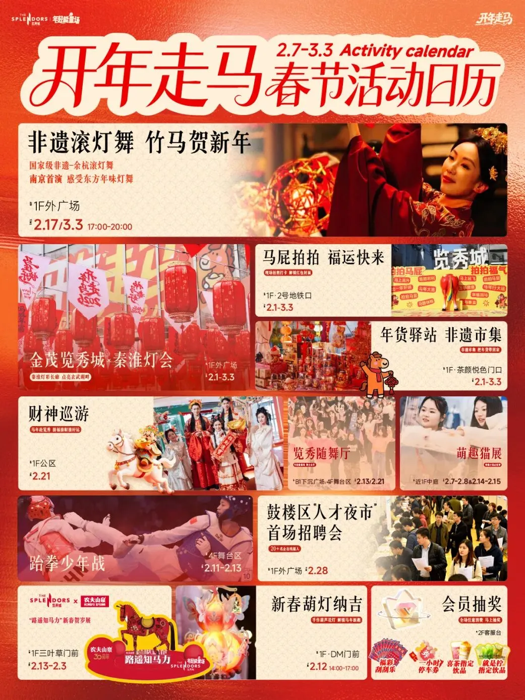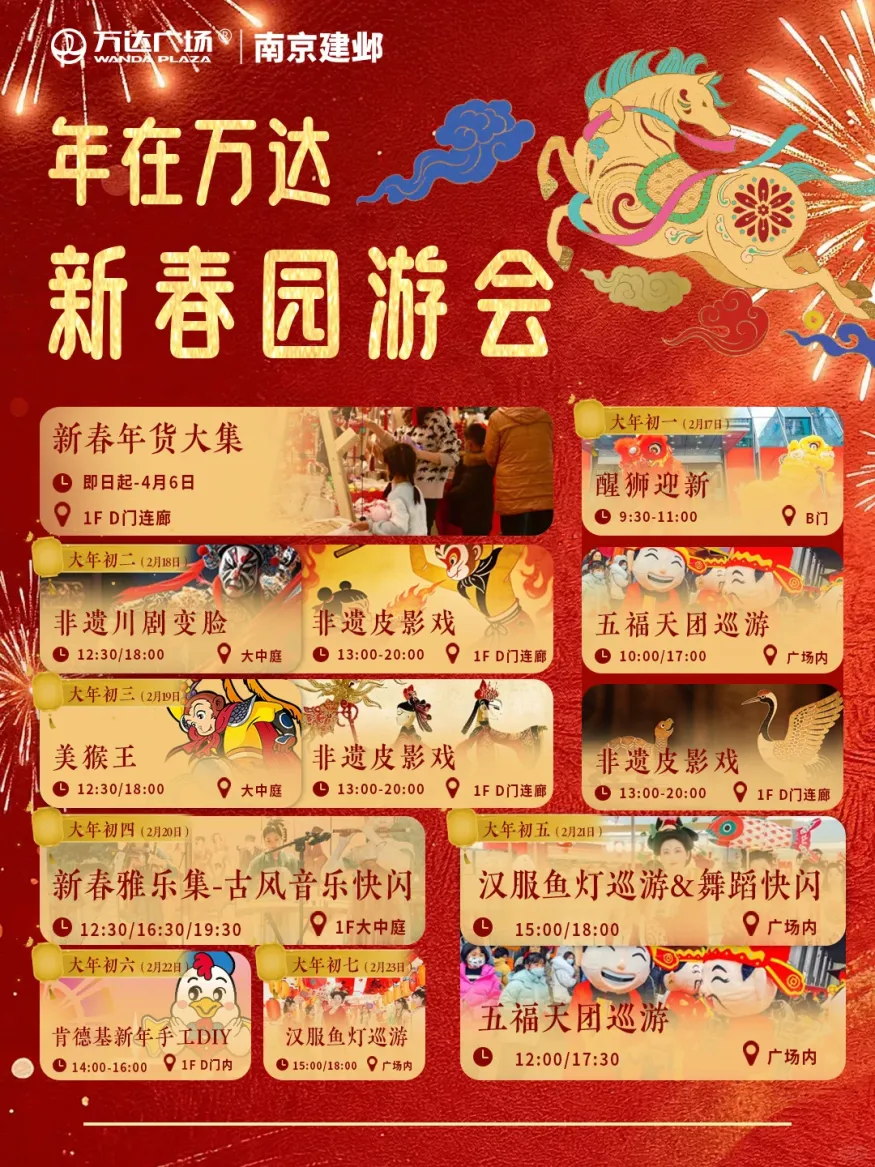 活动内容:梦小马南京首展、花神鱼灯舞、财神巡游。