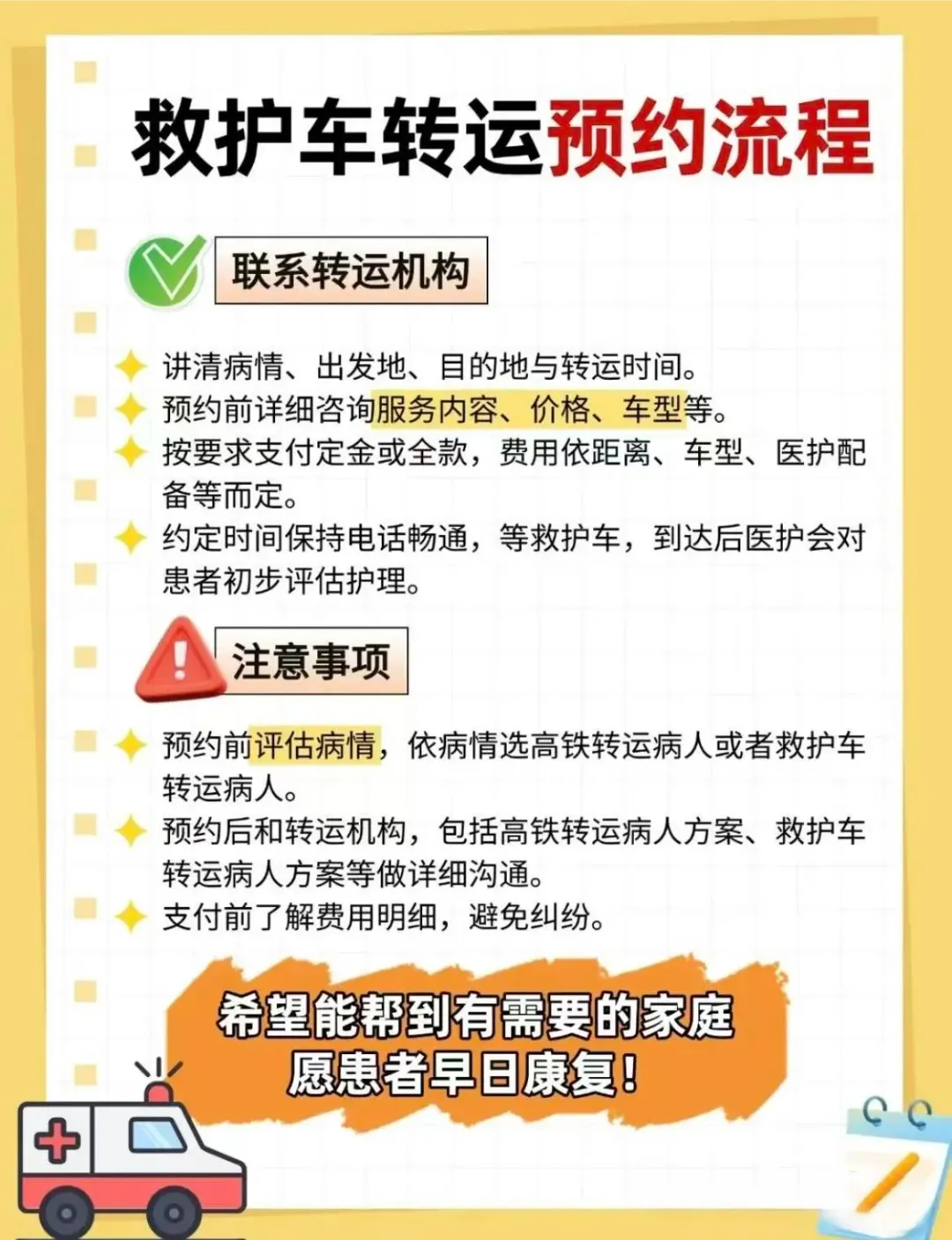 长途转运:跨市就医、术后康复转运、异地康养机构转移