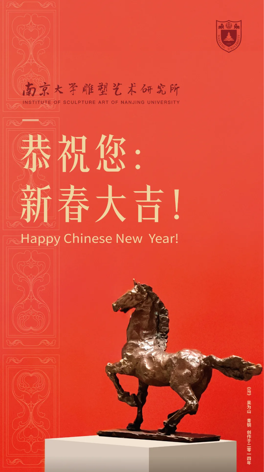 马踏青云 丙午呈祥!南京大学雕塑艺术研究所恭祝您新春快乐、马到功成!
