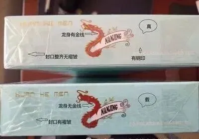 o真品炫赫门的条盒包装通常会采用先进的防伪技术,在特定角度下会看到“南京”字样或品牌Logo的激光防伪标识,这些标识图案清晰、边缘规整,且在光线照射下会有明显的色彩变化和立体感。