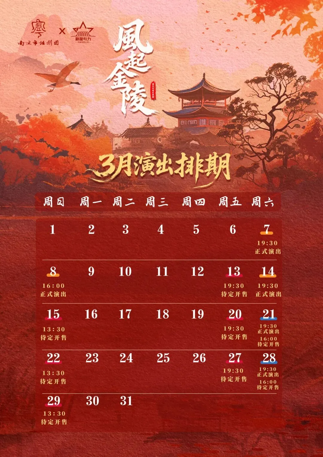 2月9日起·雨花剧院/科科小剧场/南京文化艺术中心 在南京市话剧团国风喜剧《风起金陵》,与科班演员穿梭于仿明市集,零距离互动,共同经历一段跌宕起伏的金陵传奇。