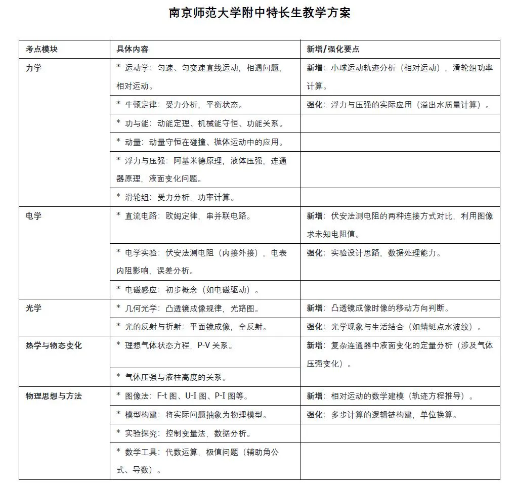 >南京师范大学附中物理特长生考点分析