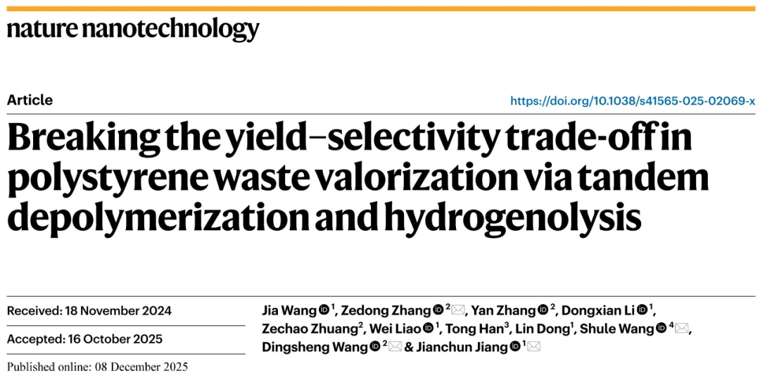 Wang, J., Zhang, Z., Zhang, Y. et al. Breaking the yield–selectivity trade-off in polystyrene waste valorization via tandem depolymerization and hydrogenolysis. Nat. Nanotechnol. (2025). https://doi.org/10.1038/s41565-025-02069-x