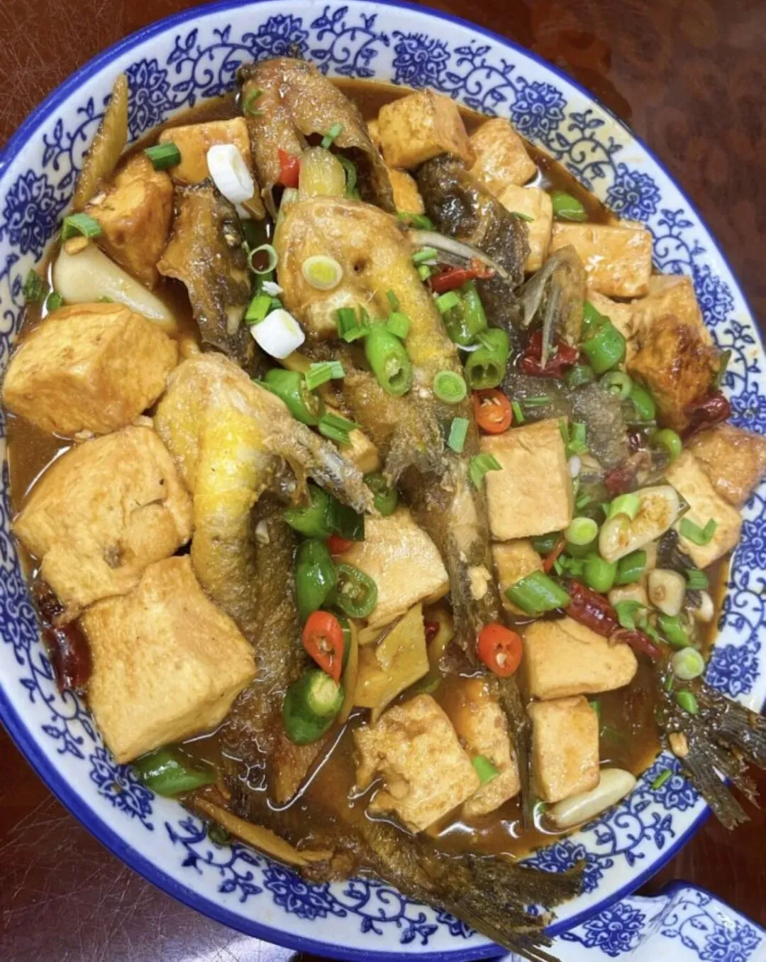 这道昂刺鱼雪菜烧豆腐,鱼肉非常鲜嫩,有点微辣口感。豆腐好像是那种老豆腐做的,蘸满汤汁很下饭。