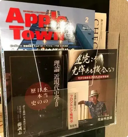最让人愤怒的,是2017年的一件事。当时有中外游客入住APA酒店,发现客房的书桌抽屉里,都放着一本书。这本书的作者,正是元谷外志雄,他用了“藤诚志”这个笔名。