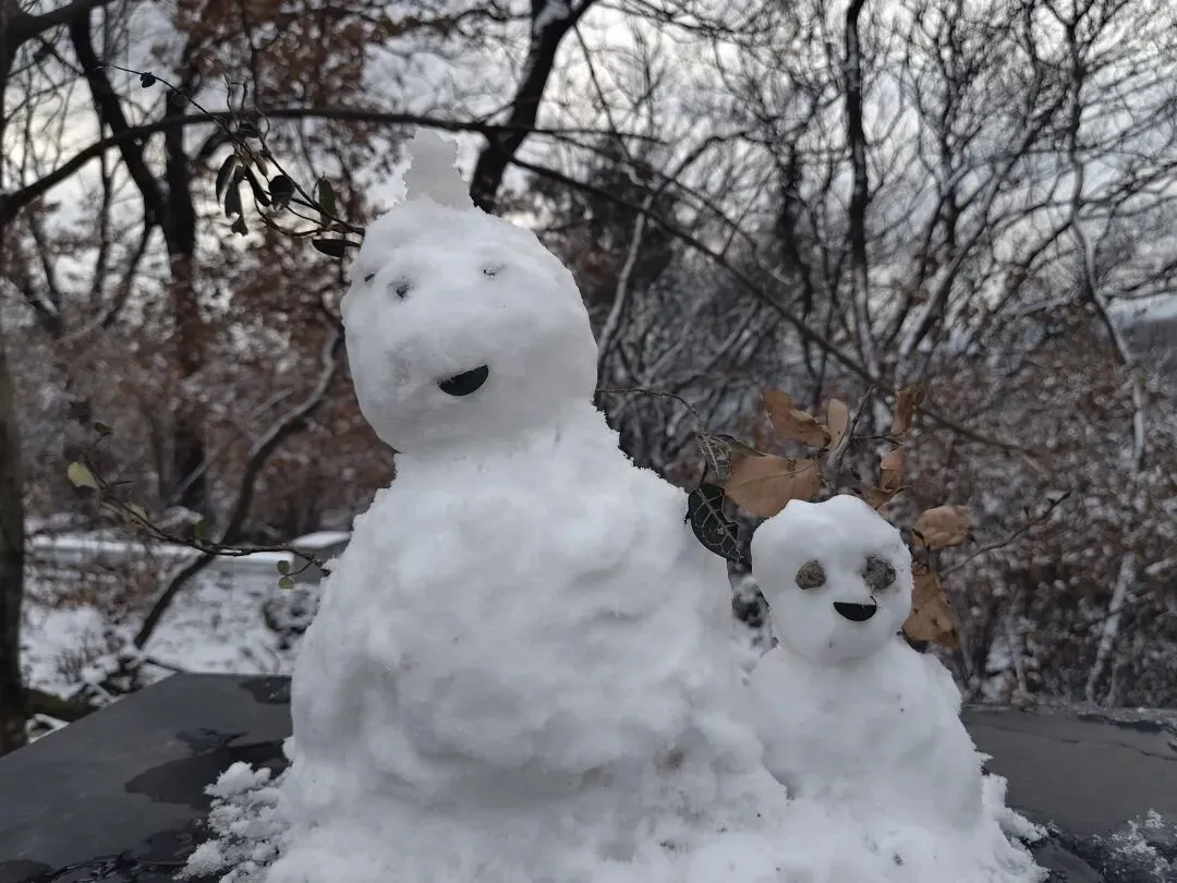山顶平台处,我们发现了一对雪人,还挺好看,赶紧拍照存档。