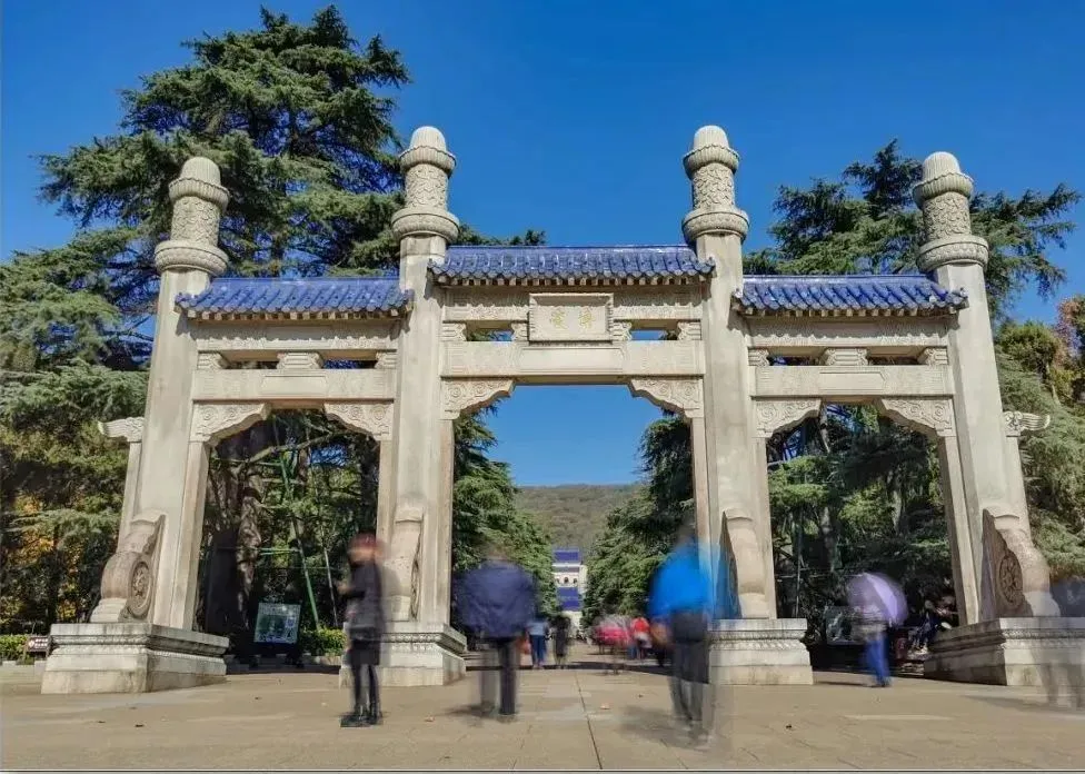 中山陵牌坊亦称博爱坊,石牌坊横楣上的“博爱”两个鎏金大字,宽博大方,空间开阔,予人畅想无穷。孙中山先生平时最喜欢将这两个字写以赠人,他毕生以伟大的博爱精神致力于民主革命,为民族的独立自由奋斗不息,可以说“博爱”二字正是对他一生的高度概括和最好写照。