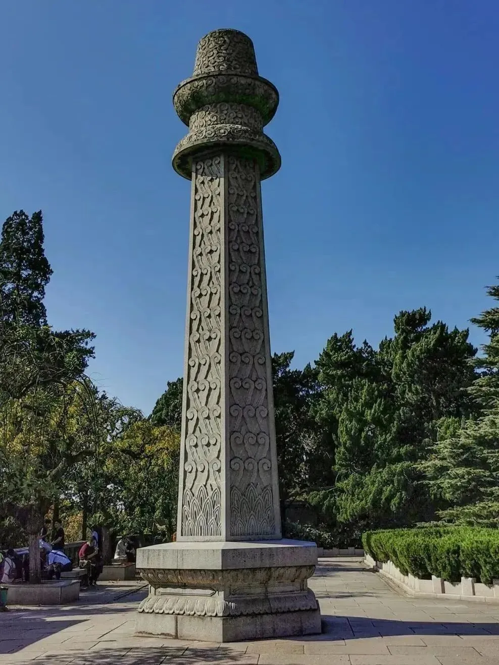 高耸在雨花台主峰的纪念碑建于1989年,由两层平台托起,有100级台阶。纪念碑高42.3米,隐喻南京在1949年4月23日解放。