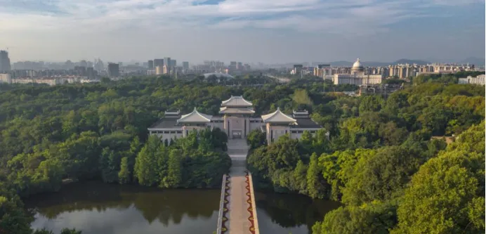 雨花台烈士纪念馆是国家一级博物馆,也是全国唯一一座综合反映雨花英烈事迹的革命纪念馆。造型古朴典雅,风格简洁庄重,馆名由邓小平同志亲笔题写。门庭南北两面均雕有“日月同辉”花岗石浮雕,象征着烈士精神与山河共存,与日月同辉,这也是纪念馆的馆徽。