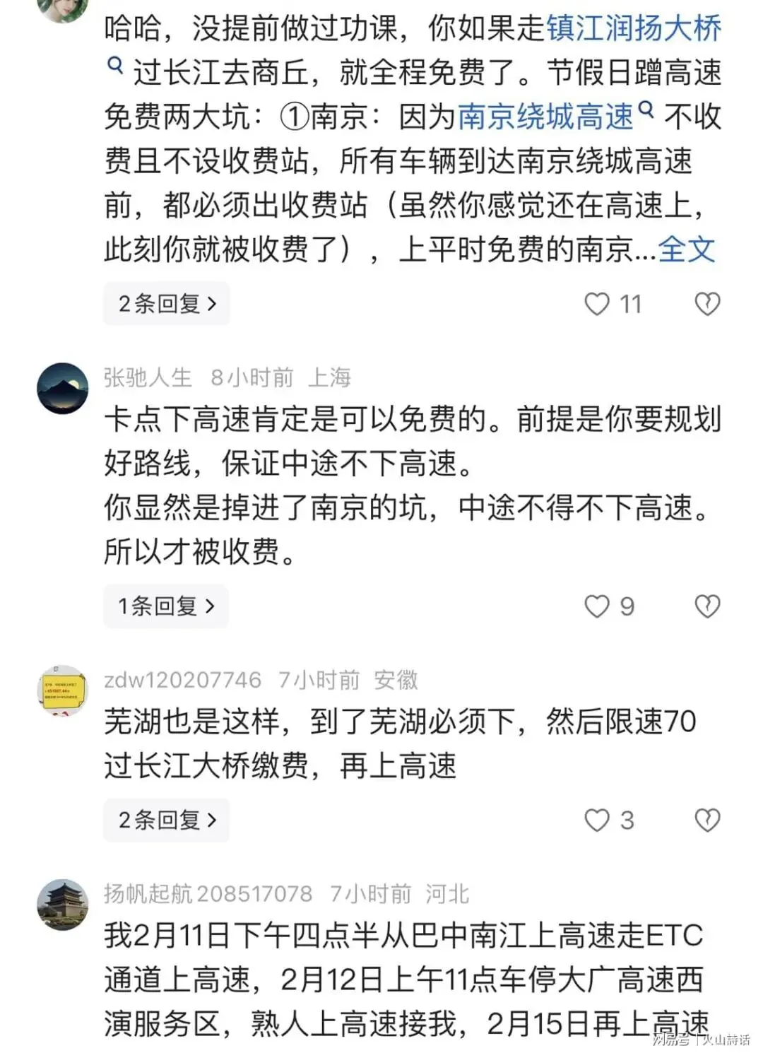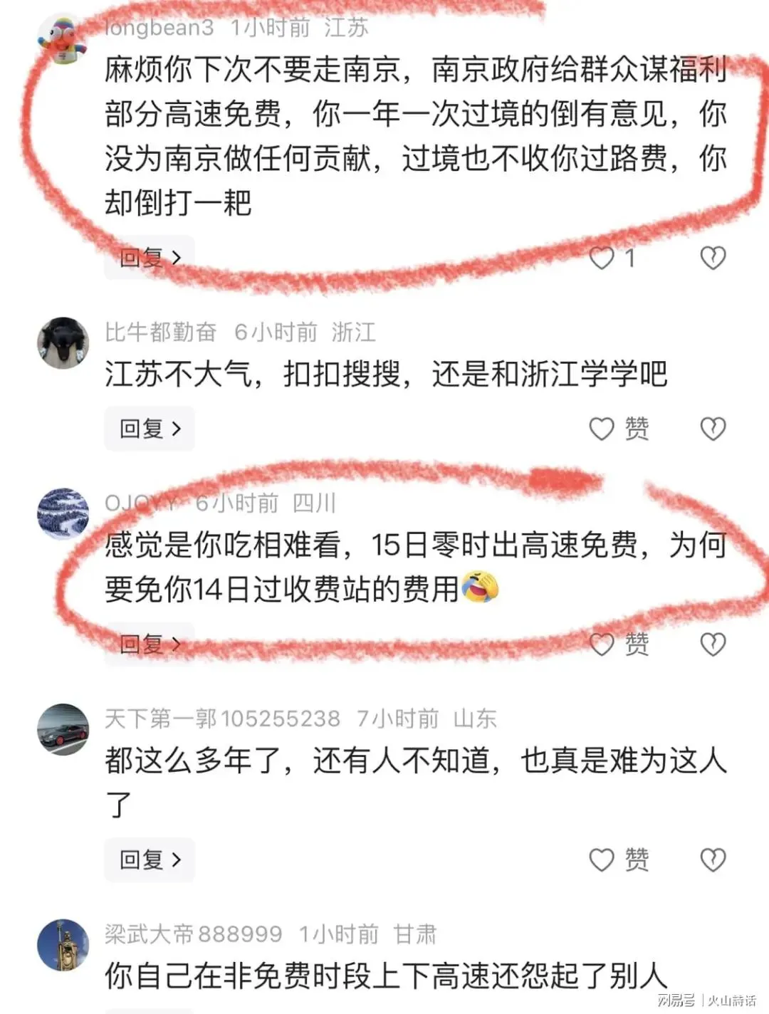 另有网友直言:“建议下次直接绕行南京。当地部分高速本就常年免费惠民,而你一年仅过境一次,既未纳税也未贡献本地经济,却对合理收费横加指责,属实有失公允。