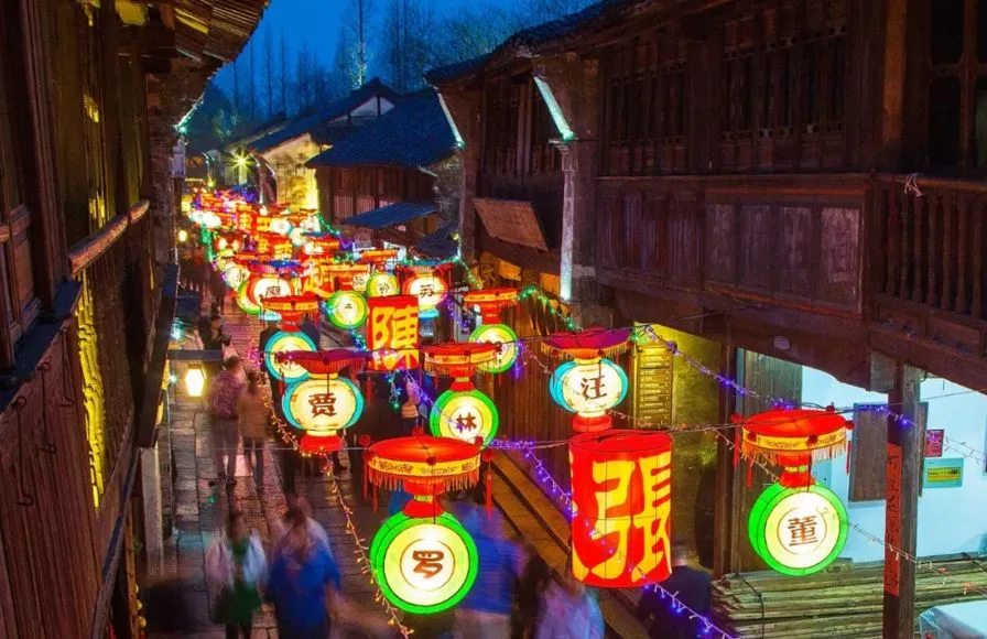 每到新年,乌镇还会有热闹的水灯节,各种形象,各种颜色的灯火,点缀着小桥流水人家,更增添了一分节日气息。