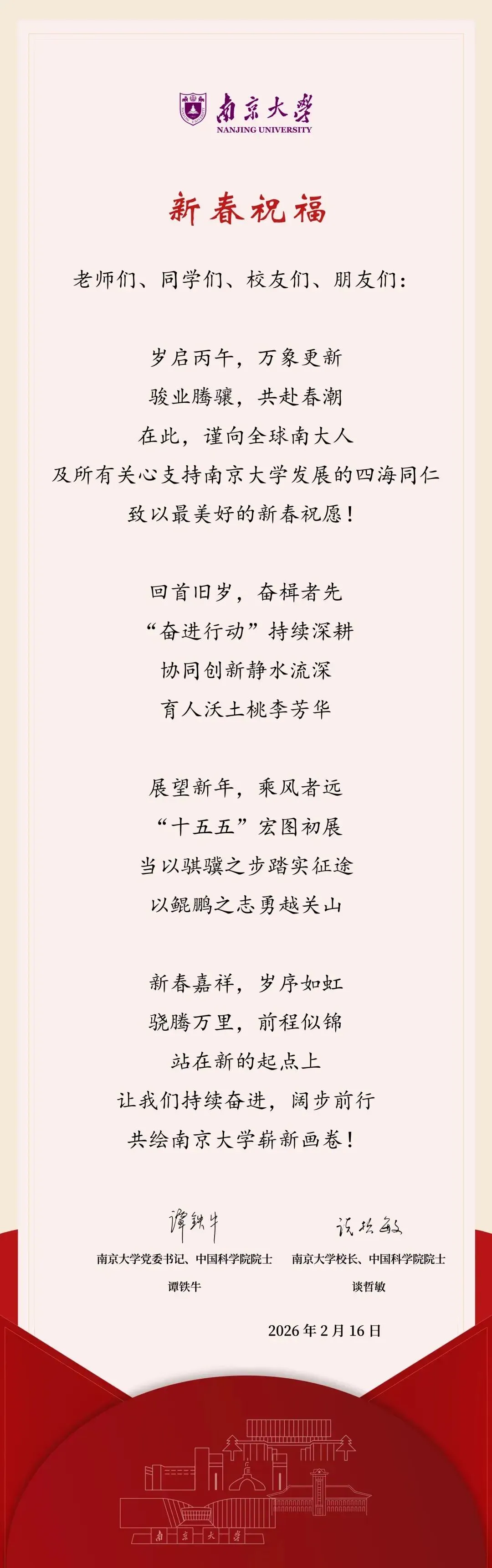 马跃新程 瑞启丙午!南京大学恭祝您新春快乐、骁腾万里!
