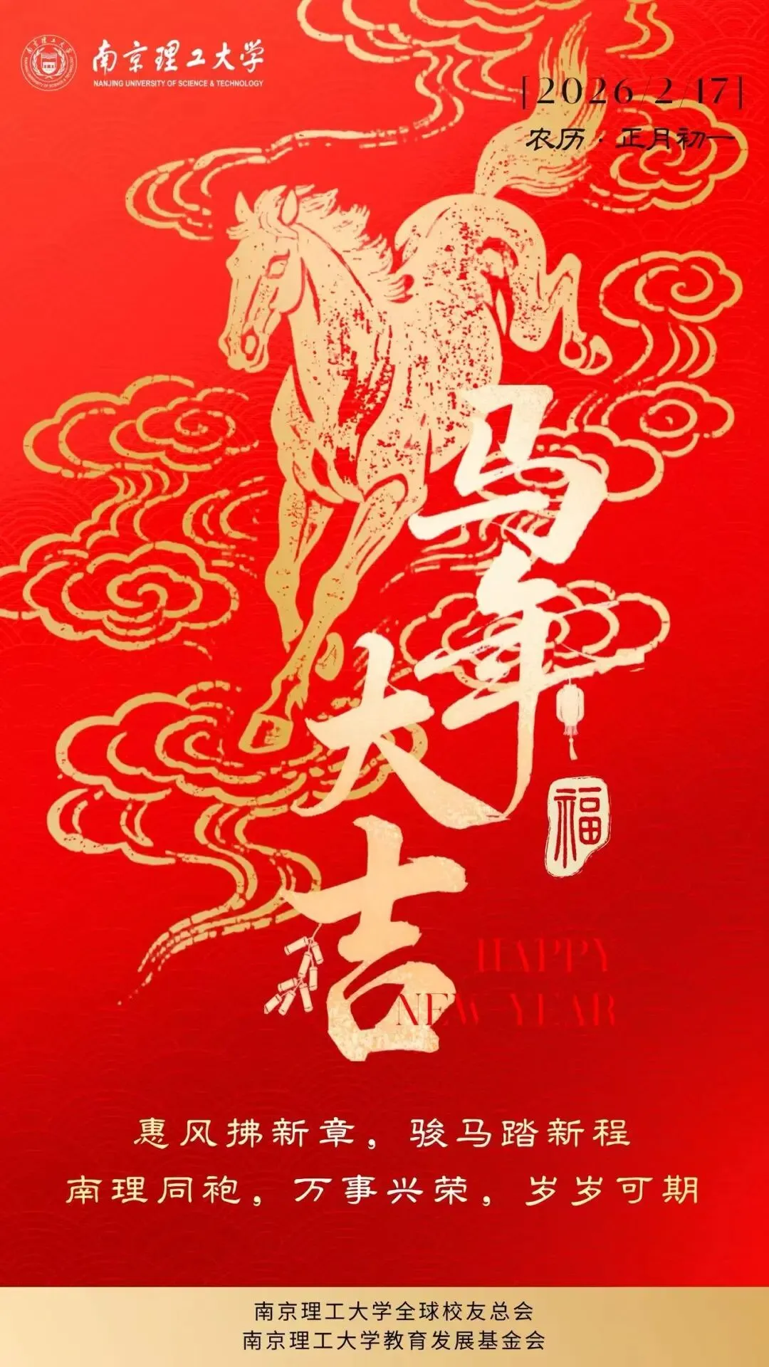 南京理工大学全球校友总会祝海内外校友新春快乐,马年大吉!