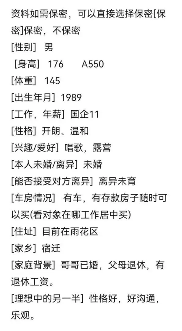 这是一个浮躁的时代,也是一个认识人成本极低的时代,无效的人和事占据太多的时间,骗子、约炮、理财销售等等让我们产生焦虑、内耗,为了帮助大家节约时间,相亲宝公众号发帖人不公布联系方式,我们红娘负责过滤一些不靠谱的人,专门进行验证,核实。提示大家:相亲急切的心情可以理解,但相亲过程中不要有任何金钱往来,切记切记。精准一对一推荐介绍,唯一线下门店地址:秦淮区大行宫长安国际2307。