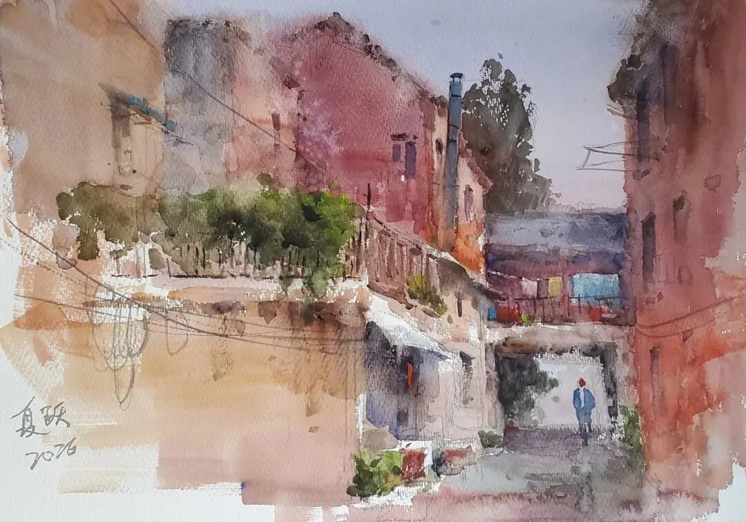 夏跃 《后街》水彩