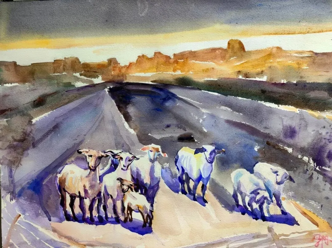 杨罗丹 《土长城与羊群》水彩