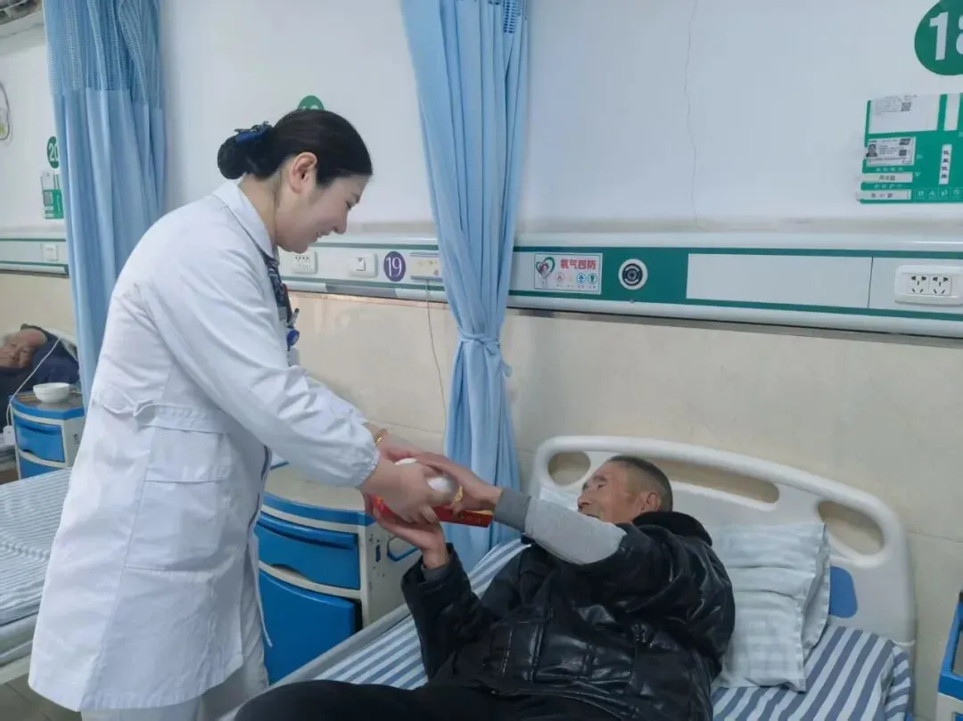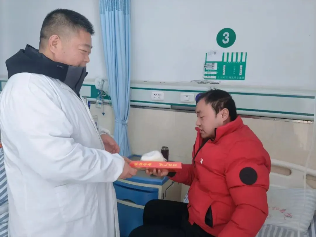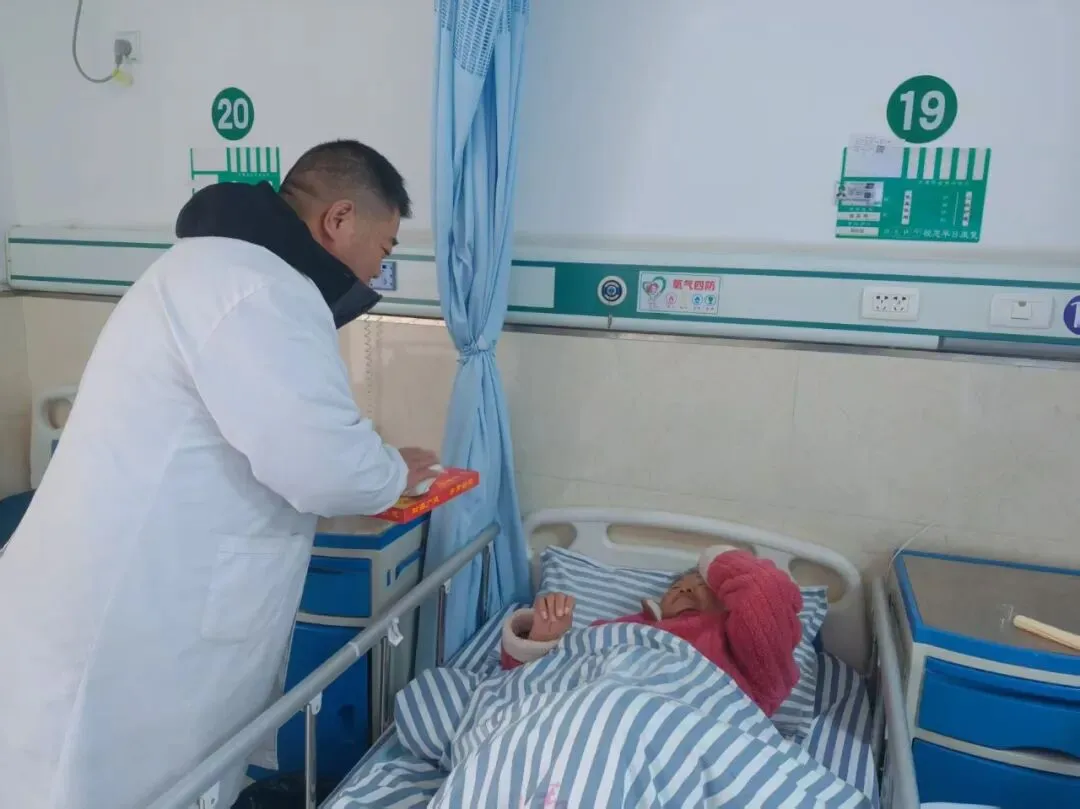 随后,我院院长张晓卫带队深入各临床病区,开展节日慰问。每到一处,张院长都来到患者床边,代表医院送上新春的祝福和慰问品。他详细询问了患者的病情恢复情况和节日期间的饮食安排,叮嘱医护人员要全力做好春节期间的医疗护理工作,让住院患者在医院也能感受到家的温暖。