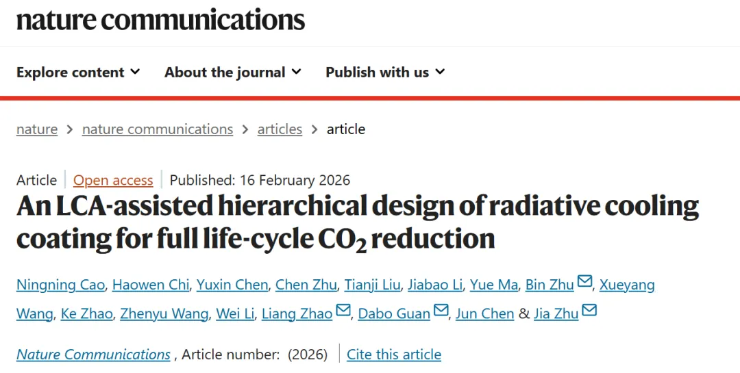 南京大学朱嘉/陈骏教授、赵良、朱斌副教授等人以及清华大学基础科学讲席教授关大博携手针对现有辐射冷却涂层全生命周期减碳不足的瓶颈,融合生命周期评估与材料设计,开发出全生命周期碳负性被动日间辐射冷却涂层,实现了各阶段的协同减碳。