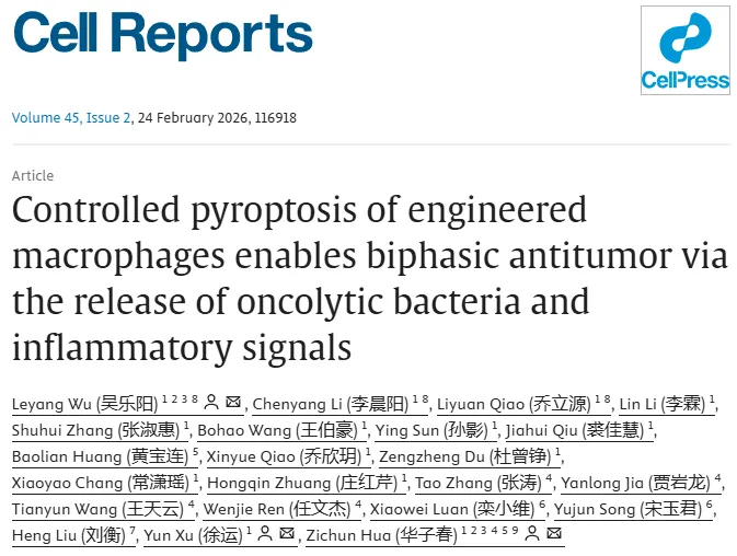 Cell Reports|南京大学华子春/徐运/吴乐阳开发一体化细胞创新疗法,实现溶瘤细菌与促炎因子可控释放、双相抗癌