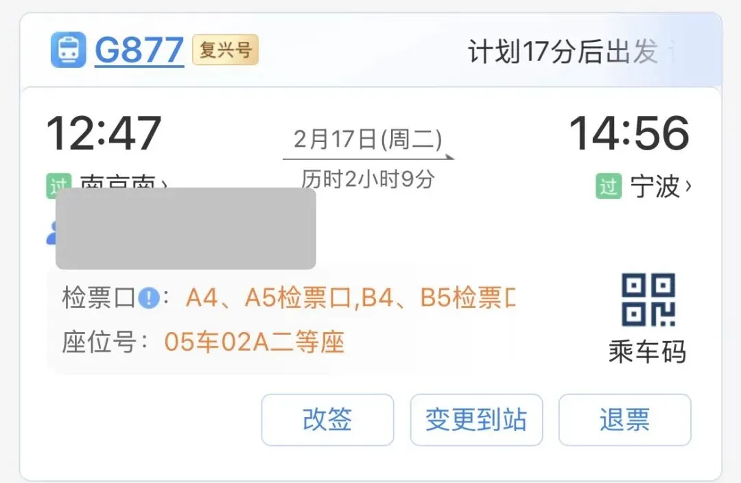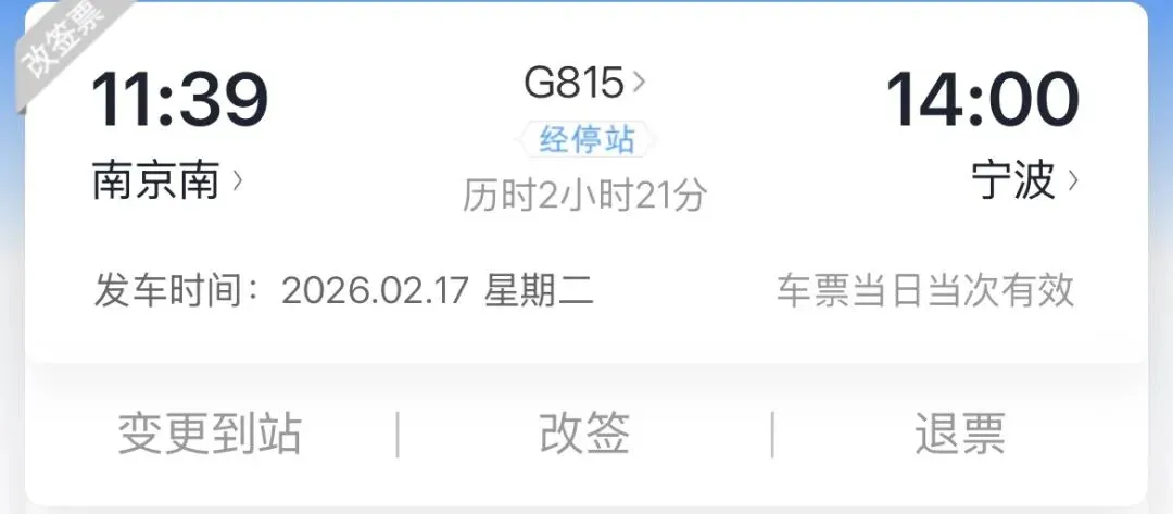 退票费20%,195元南京南-》宁波,40元