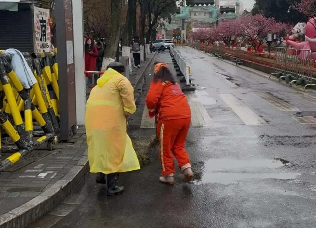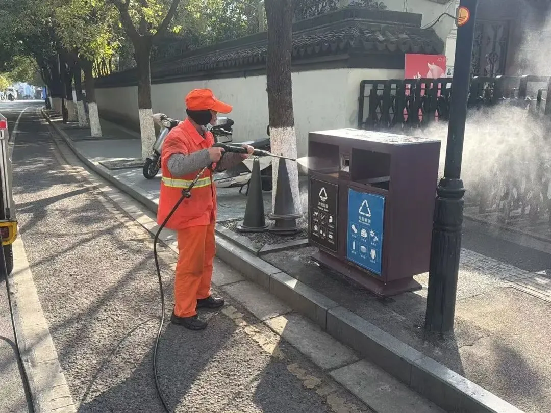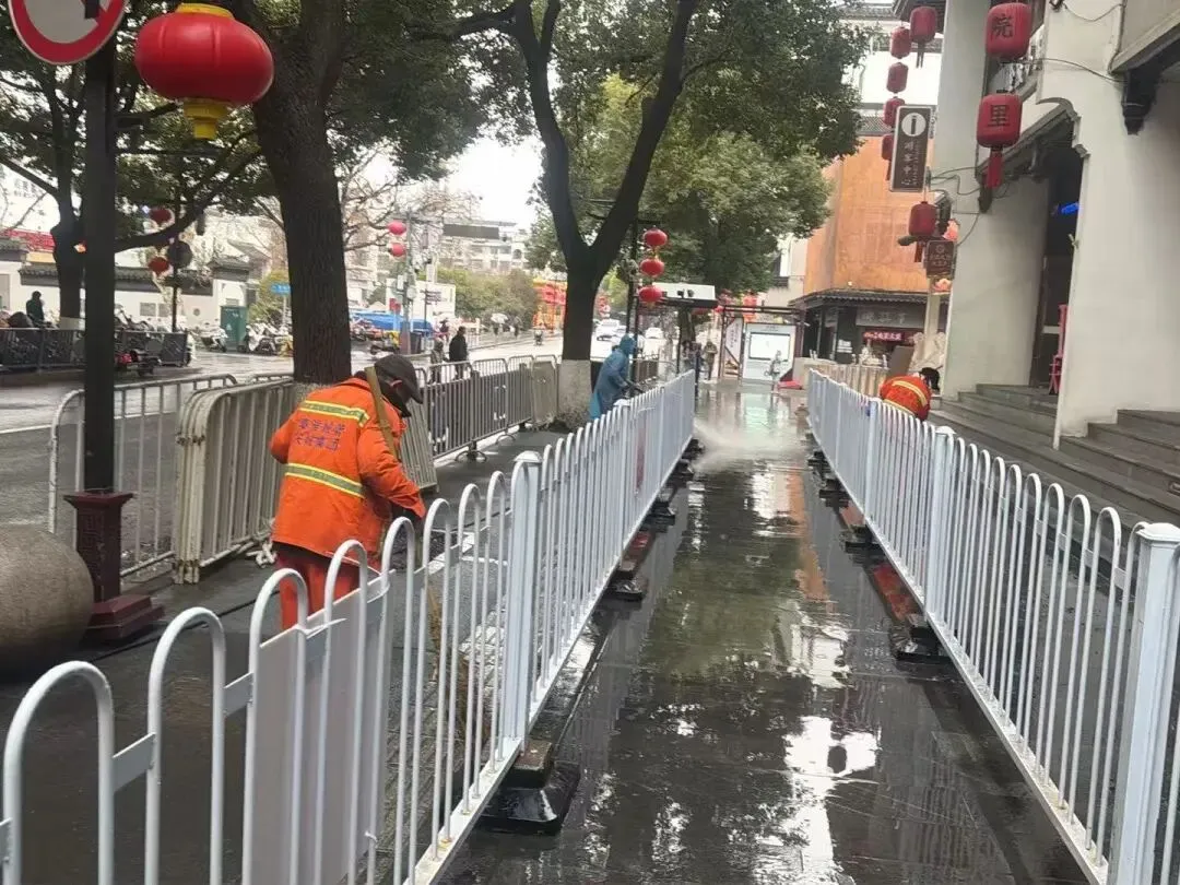 不仅如此,秦淮城管还延长了作业时间。核心区域晚间保洁时间延长至24:00,待游客疏散后开展路面深度清扫,彻底清除路牙积尘、砖缝杂物及卫生死角。