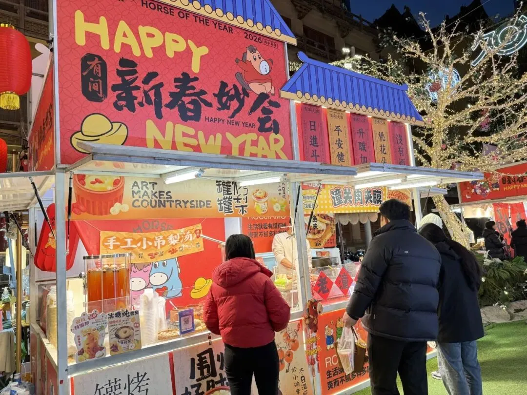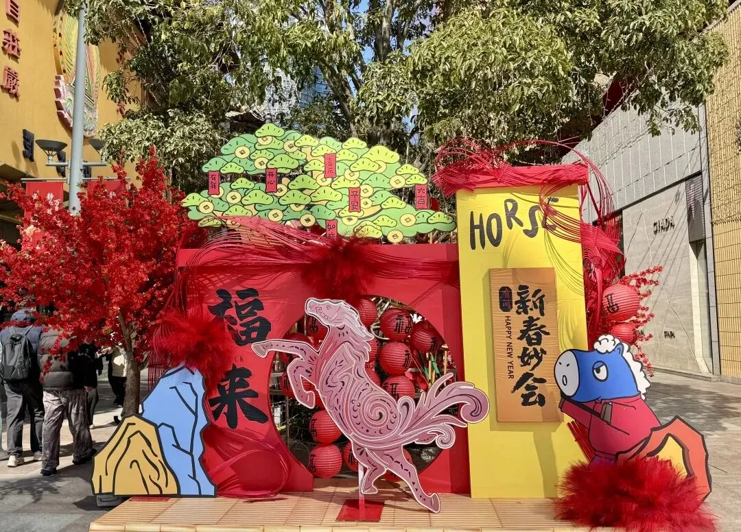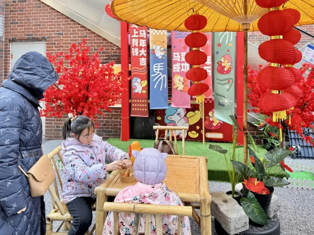 更有趣的是,集市各处还设置了讨口彩打卡点,“Horse成双”“马到成功”等俏皮又吉祥的标语随处可见,边走边拍、边逛边沾喜气,把一整年的好运都“马”上带回家!