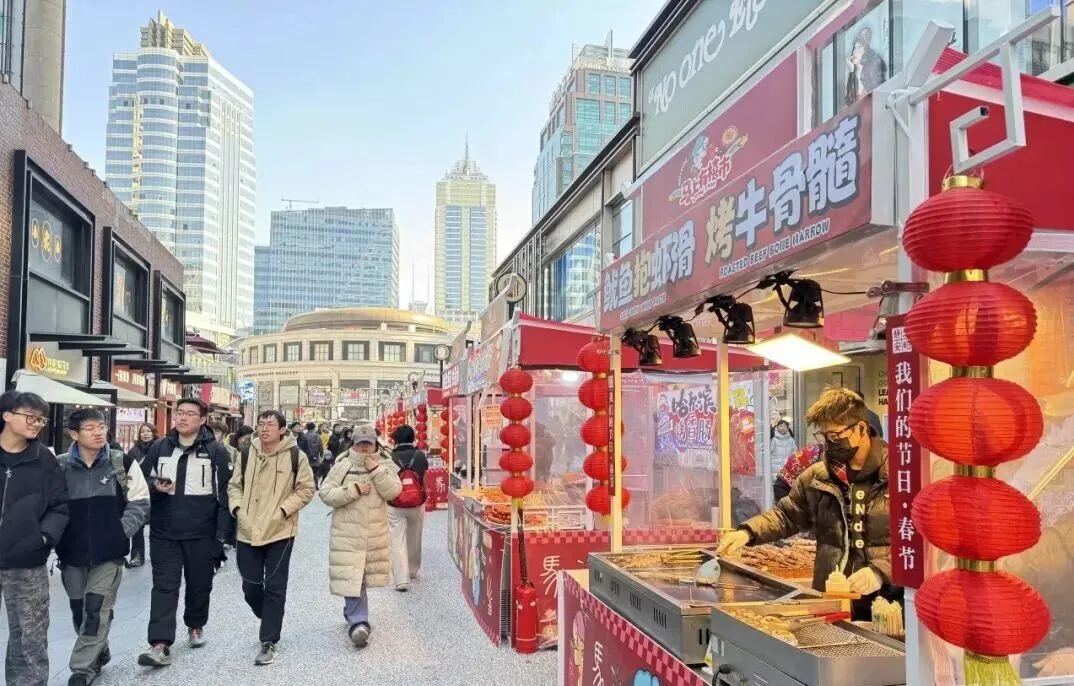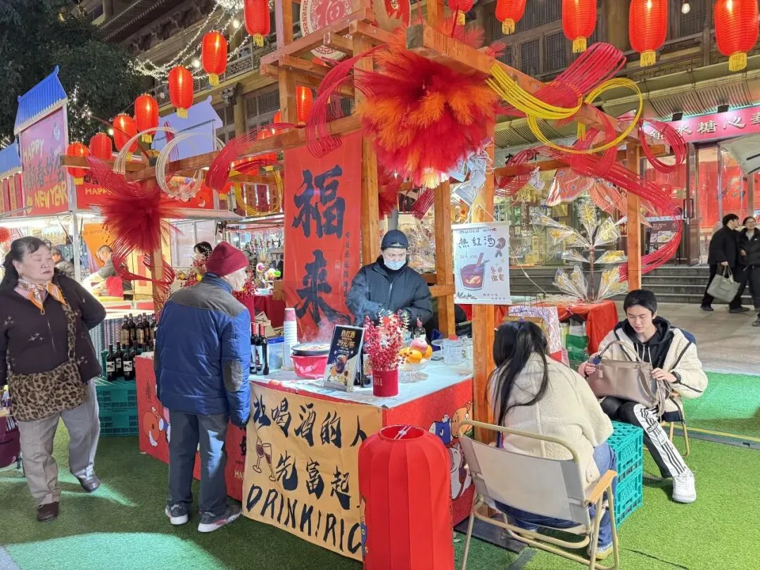 更不定期有非遗艺人来到现场,吹糖人、剪窗花。传统与潮流交融,让整条街既年味十足,又洋溢着青春活力,成为市民感受节日仪式感与城市温度的热门目的地。