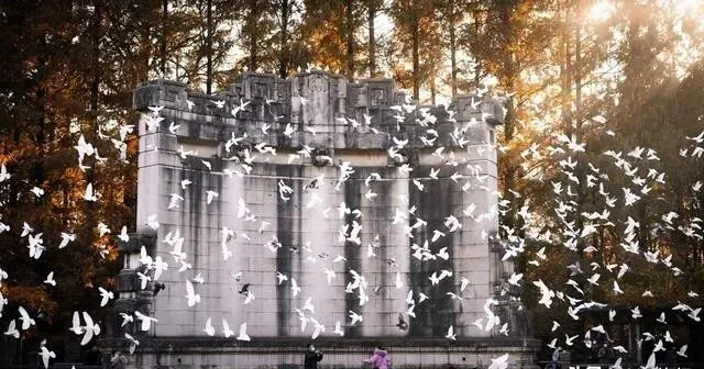 这地方藏在中山陵广场南边 , 半圆形的舞台设计 , 后面一面弧形照壁 , 声音能汇聚过来 , 设计感很强。 但说实话 , 大部分人来这儿不是为了建筑 , 是为了鸽子~