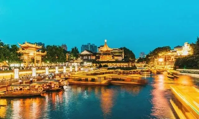 白天的秦淮河普普通通 , 但晚上完全变了。 画舫在水上慢慢飘 , 两岸灯火亮起来 , 水波里映着月光和霓虹 , 桨声灯影... 这四个字形容得太准了。