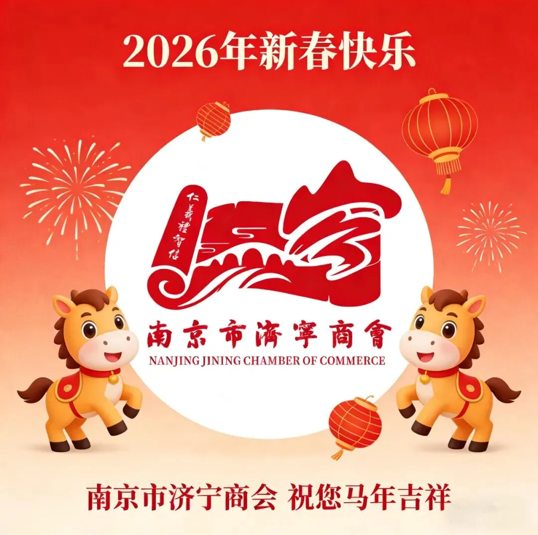 旧岁已展千重锦,新年再进百尺竿。 2026年是丙午马年,寓意着奔腾与跨越。新的一年,南京市济宁商会将继续秉持“服务会员、促进交流、回报社会”的宗旨,不断提升服务水平,拓展合作平台,让商会成为更有温度、更有力量的会员之家。我们愿与大家一道,发扬龙马精神,乘势而上,在南京这片创新热土上再创辉煌!