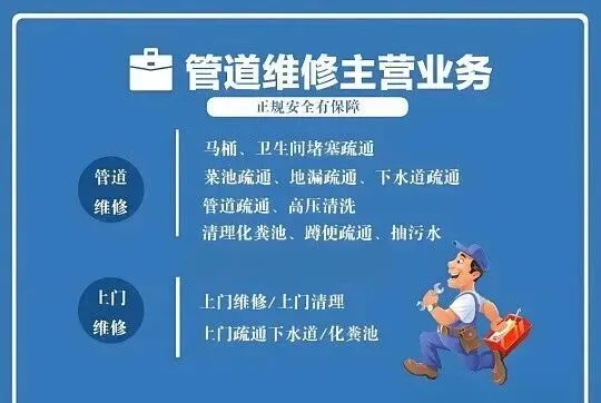 🚽 管道疏通:使用家用疏通机、大型疏通机等设备,专业疏通各类疑难下水道、卫生间、地漏、浴缸、菜池、阴沟、马桶、蹲坑等。