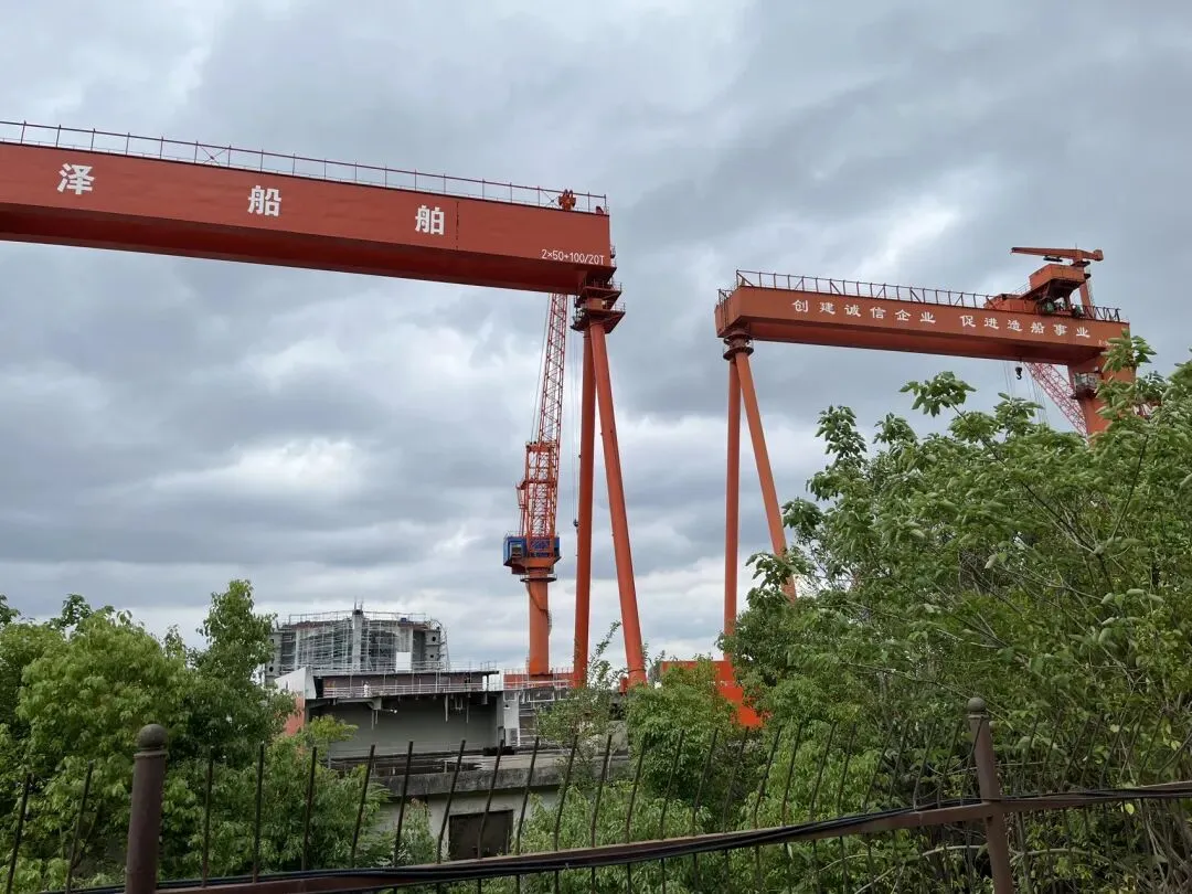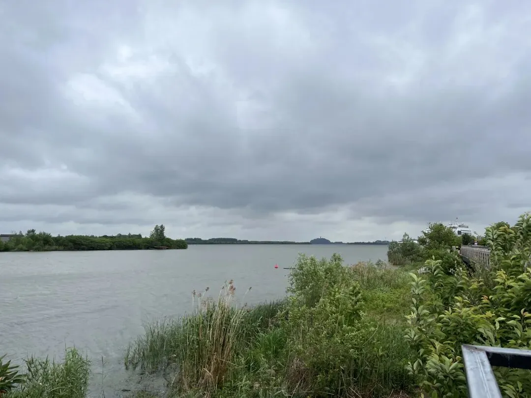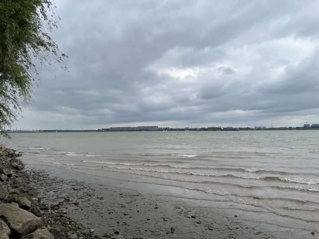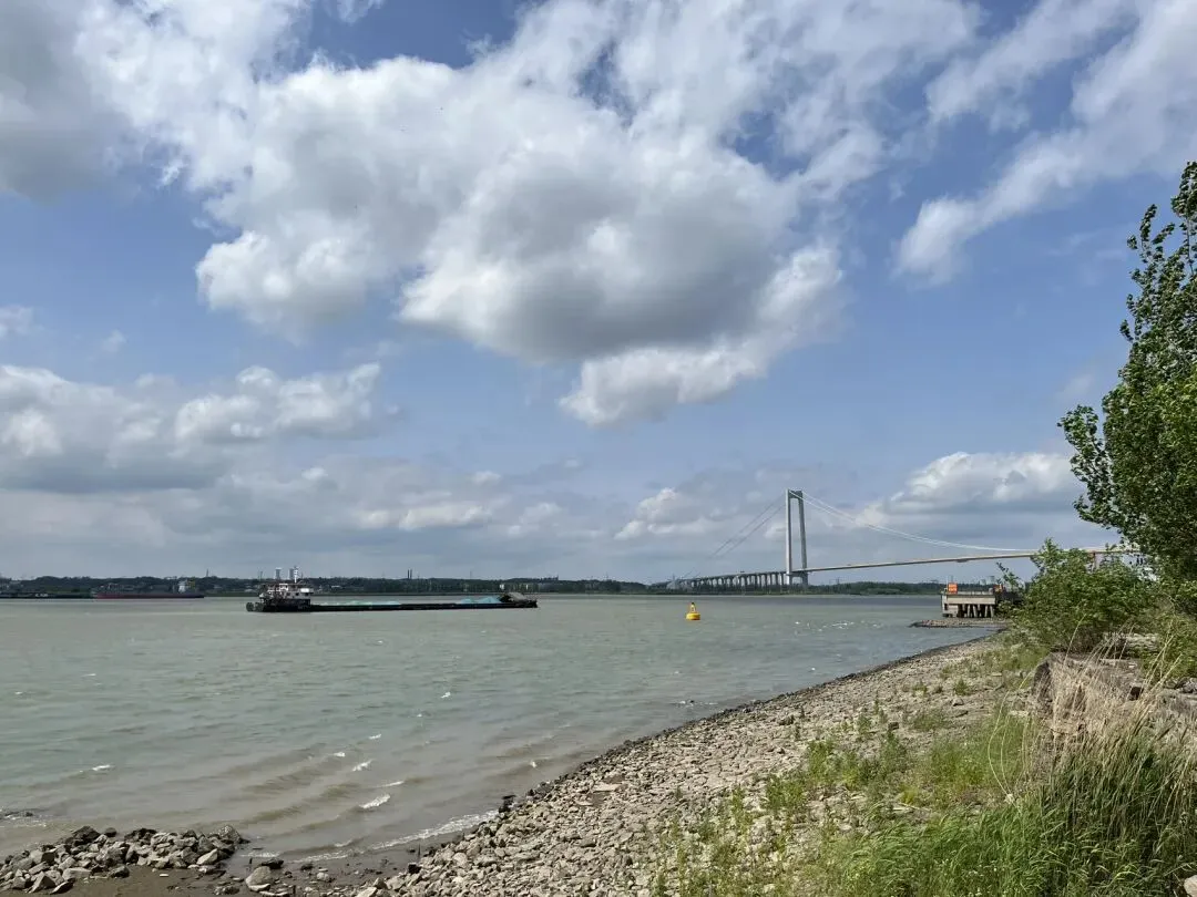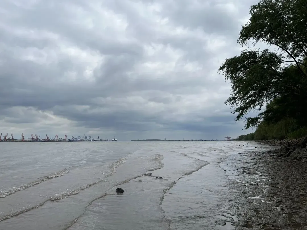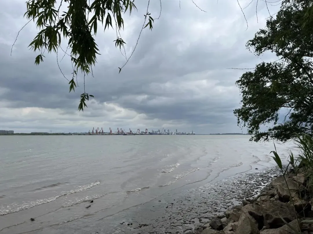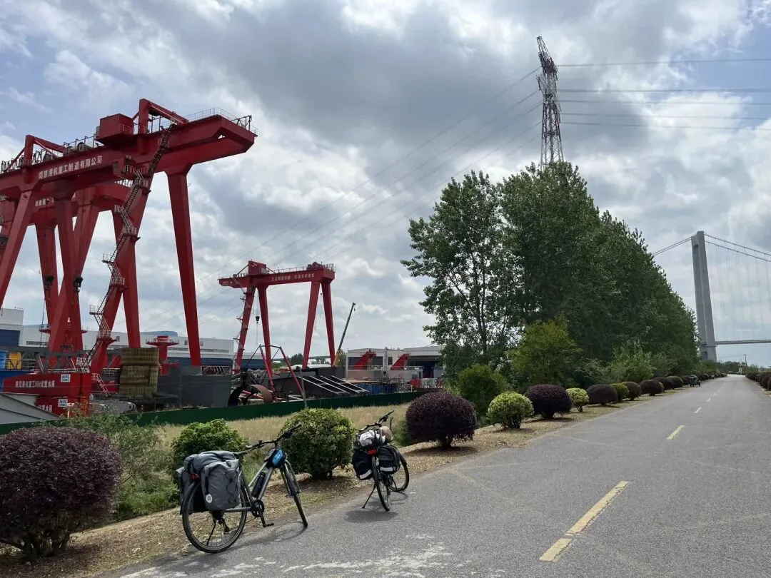 看到有小路,走到江边近距离的呆了一会儿造船厂