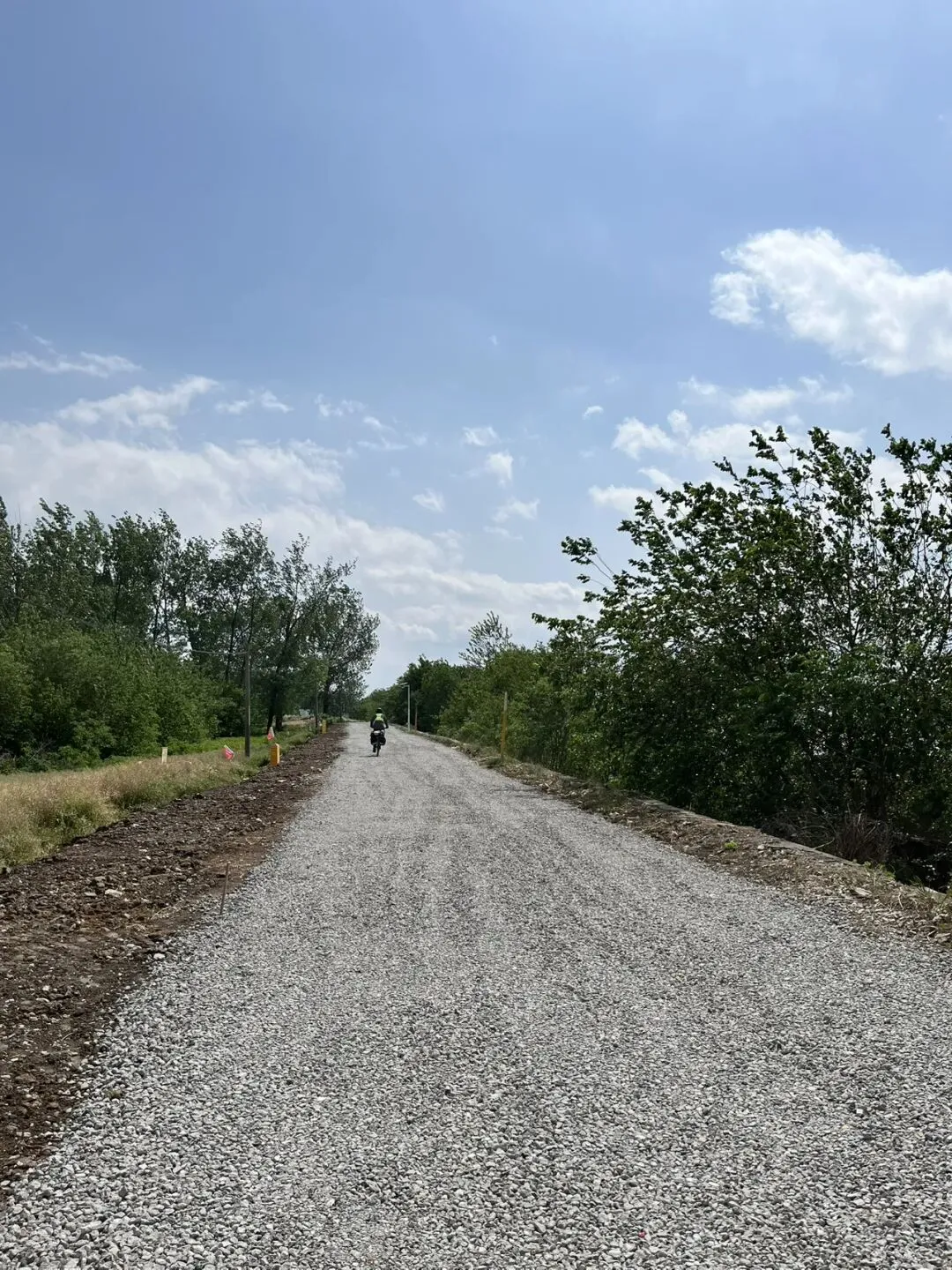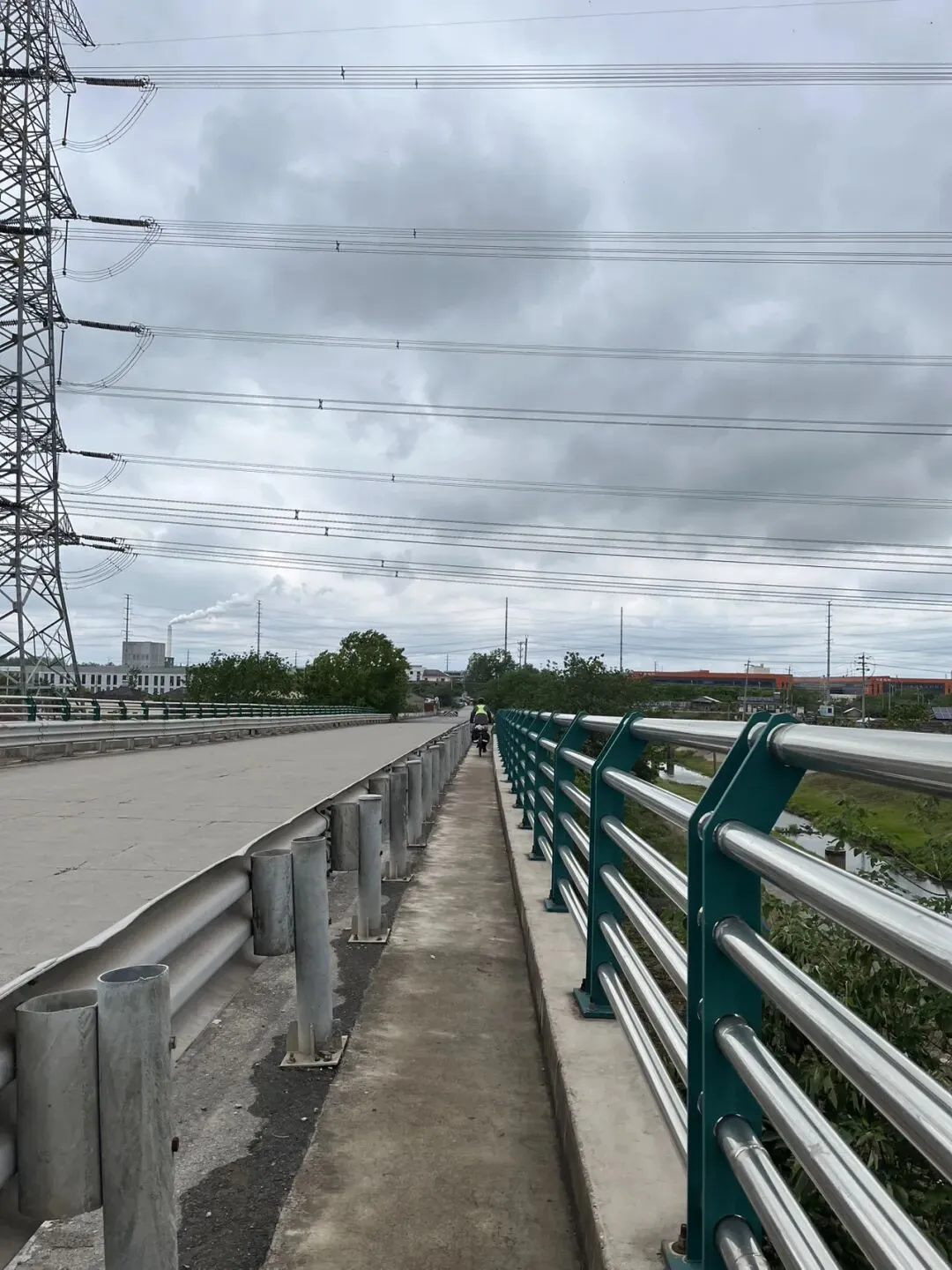 沿S338走了一段后不再有单独的非机动车道,左拐到一个小乡路,摘了两次路边的桑葚吃。最后导航让上过街天桥后再回归省道,没想到非机动车道是这么窄窄的,感觉有点儿考验我的技术啊