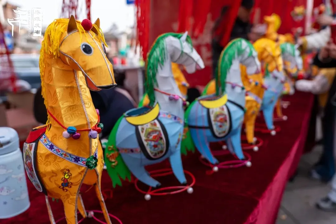 今年是生肖马年,各式各样的马灯,精巧灵动,有气势恢宏的飞马,有可爱的摇摇马。各种造型的马灯缀流苏、绘祥云,可提可挂,寓意“飞黄腾达”。