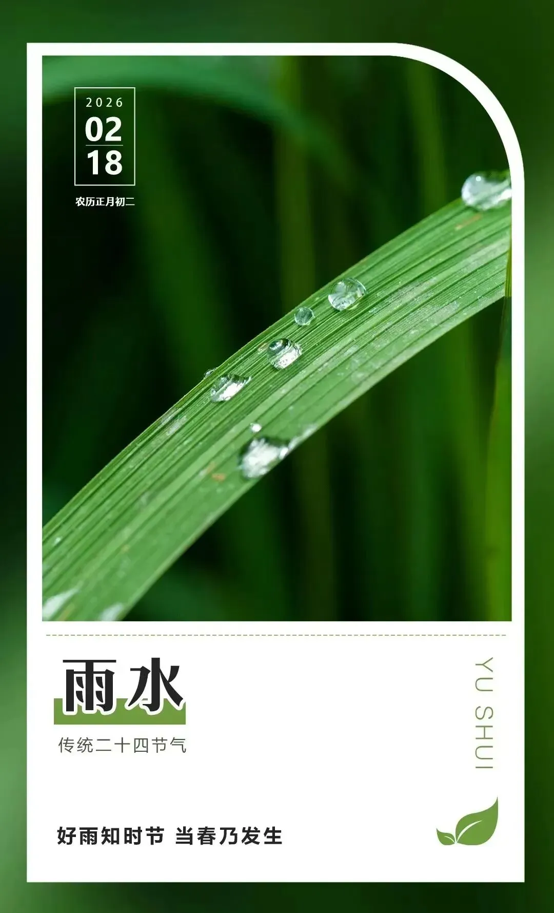 雨水,是二十四节气中的第二个节气,紧邻立春。此时太阳黄经达330°,气温回升,冰雪融化,降水增多,故取名为“雨水”。此时节,万物在雨水的滋润下开始萌动,大地呈现一派欣欣向荣的景象。