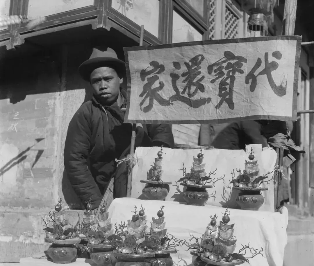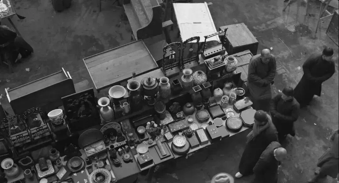 俯瞰那一排桌子,青花罐子对着紫砂壶,老铜秤挨着木砚台,旧相框里的人笑得泛黄,边上还有八仙桌、小方几、檀木画屏,挤在一起像开了个热闹的家庭会,掌柜穿长袍,手背在袖子里打量人,遇见识货的才把货往外推,我舅舅爱在这摊上淘,捻起一个小铜锁,问能开不,老板笑,说钥匙在我心里呢,得凑个缘分,他又摸到一只盖碗,指肚一敲,咚的一声脆响,像敲在瓷心上,他说声还行,不过有绺,放下就走,当年买东西靠耳朵靠手感,现在看直播刷一刷,弹幕上一水儿的正品保证,真真假假也就让快递小哥来背书了。