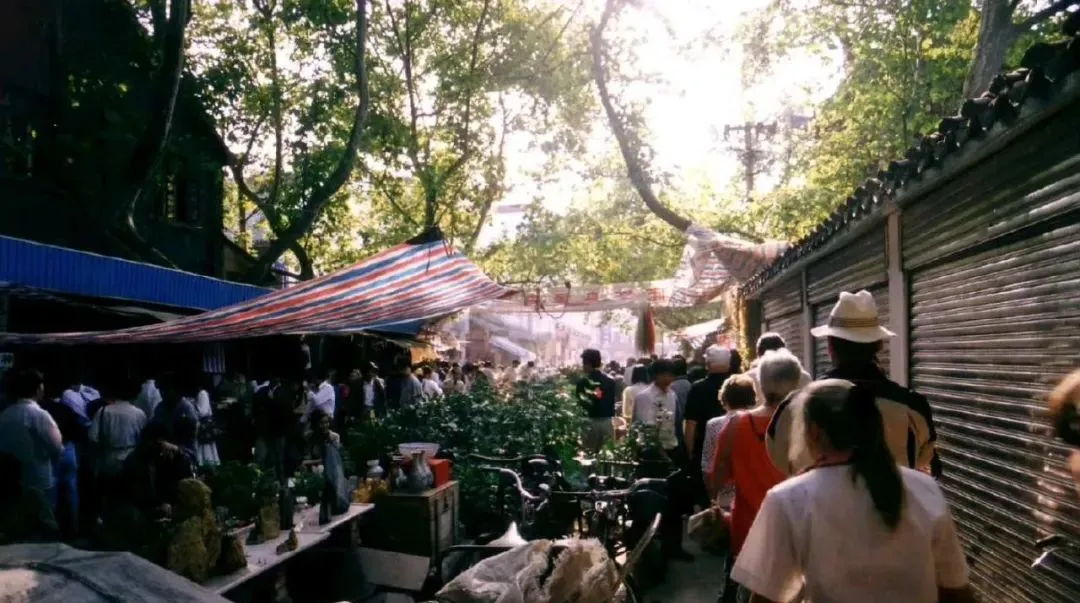 这条挤得满满的小巷叫赶集,上头拉着蓝白相间的塑料布,光从缝里往下洒,摊上摆着盆栽和旧件,水桶里泡着青菜,泥味和油饼香混在一起,手里拎着布口袋的人不急不慢,讨价还价不带火气,摊主抬头笑一句老客又来了啊,这话一落,价钱自然就谈拢了。