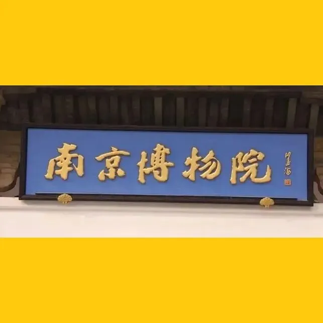 1991 年沙孟海为南京博物院题写的【南京博物院】匾额。沙孟海,当代书坛泰斗、著名学者、金石学家、考古学家、历史学家、篆刻家和教育家,1900 年 6 月 11 日出生于浙江省宁波市鄞州区塘溪镇沙村。1992 年 10 月 10 日在杭州逝世,享年九十又三。