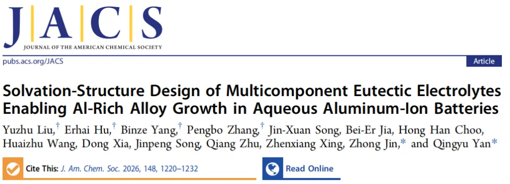 『水系铝电』南京大学 &南洋理工大学 JACS:多组分低共熔电解质的溶剂化结构设计实现水系铝离子电池富铝合金生长