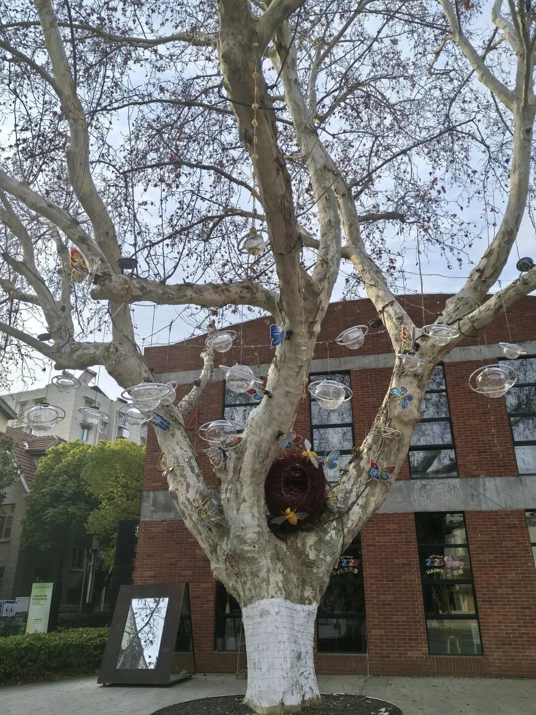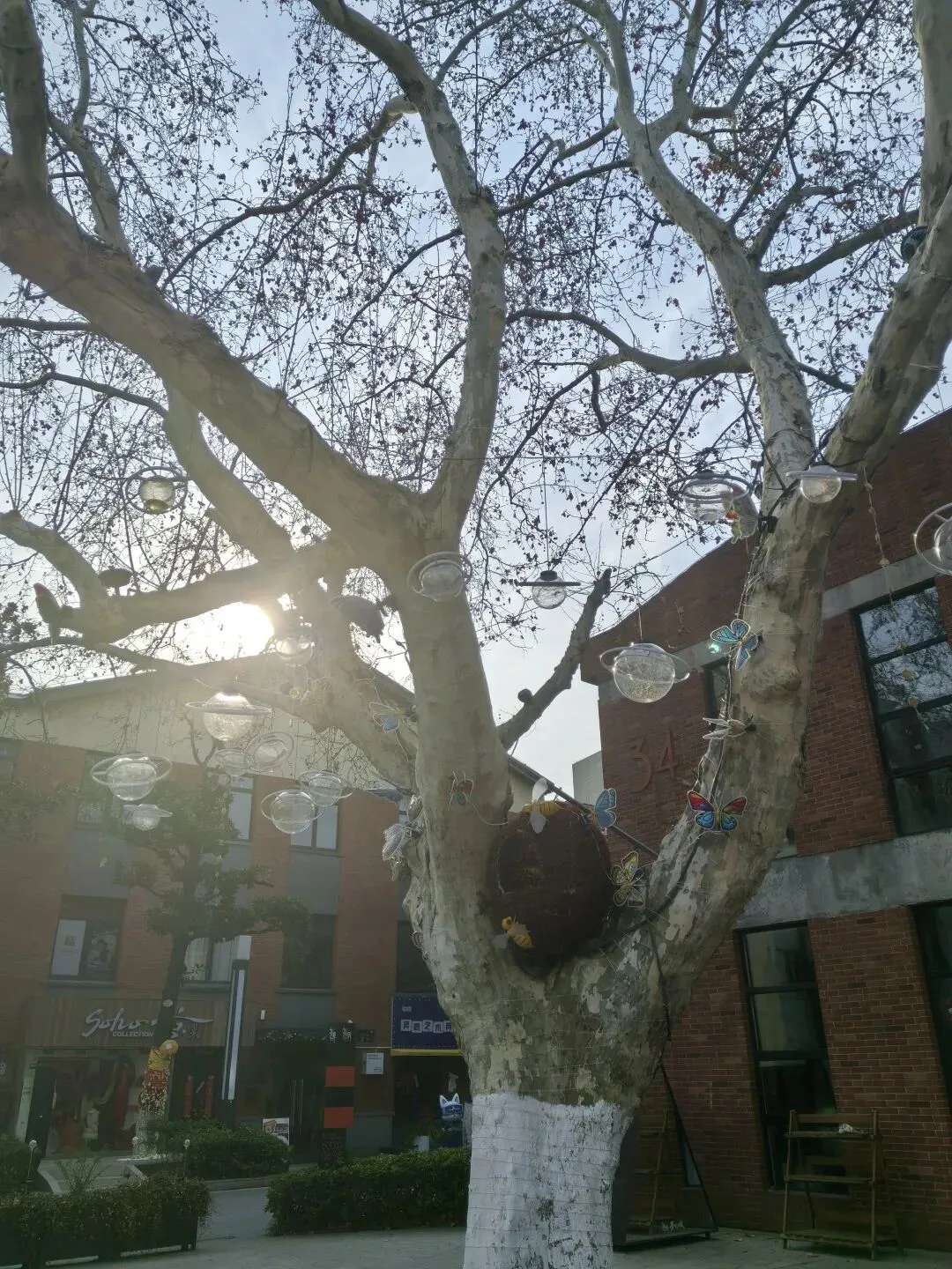 1️⃣进门右转主广场:一进门靠近招商运营中心的位置,有一个主广场,上面有个树,那里会经常有一些季节性的布置场景,之前有过绿苹果、巨型卡通猫咪......最近树上换上蜂窝造型,树上还垂着各种星球的造型,很出片