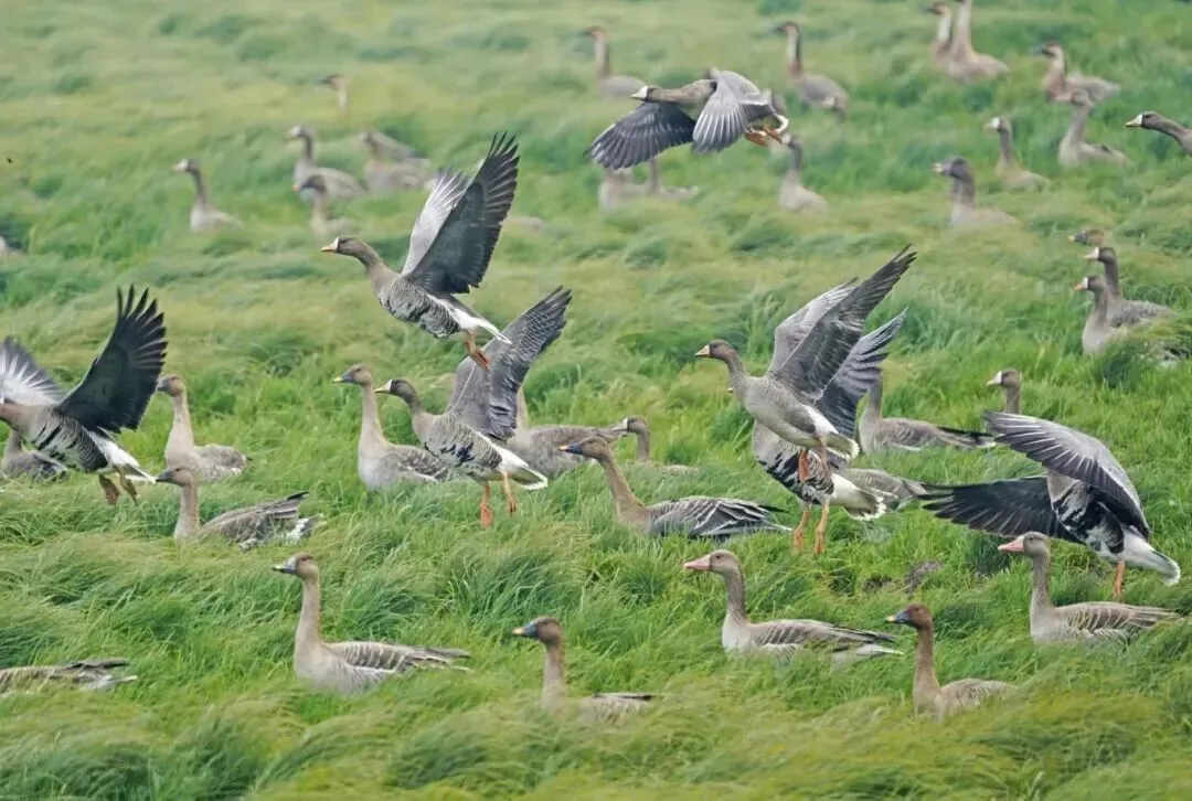 鸿雁为候鸟,春天从南方迁到北方繁衍后代,秋天再迁往南方温暖之地过冬。雨水节气之后,在南方过冬的鸿雁呈“一字形”或“人字形”雁阵向北迁徙。