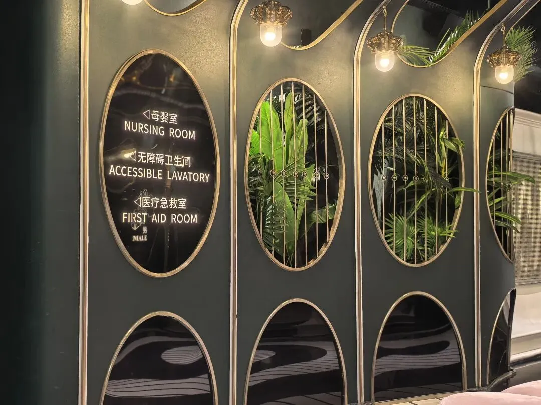 全自动马桶、戴森干手器、大牌香氛/洗手液、补光化妆镜、无线充电、母婴室、休息区,干净、舒适、细节到位 。