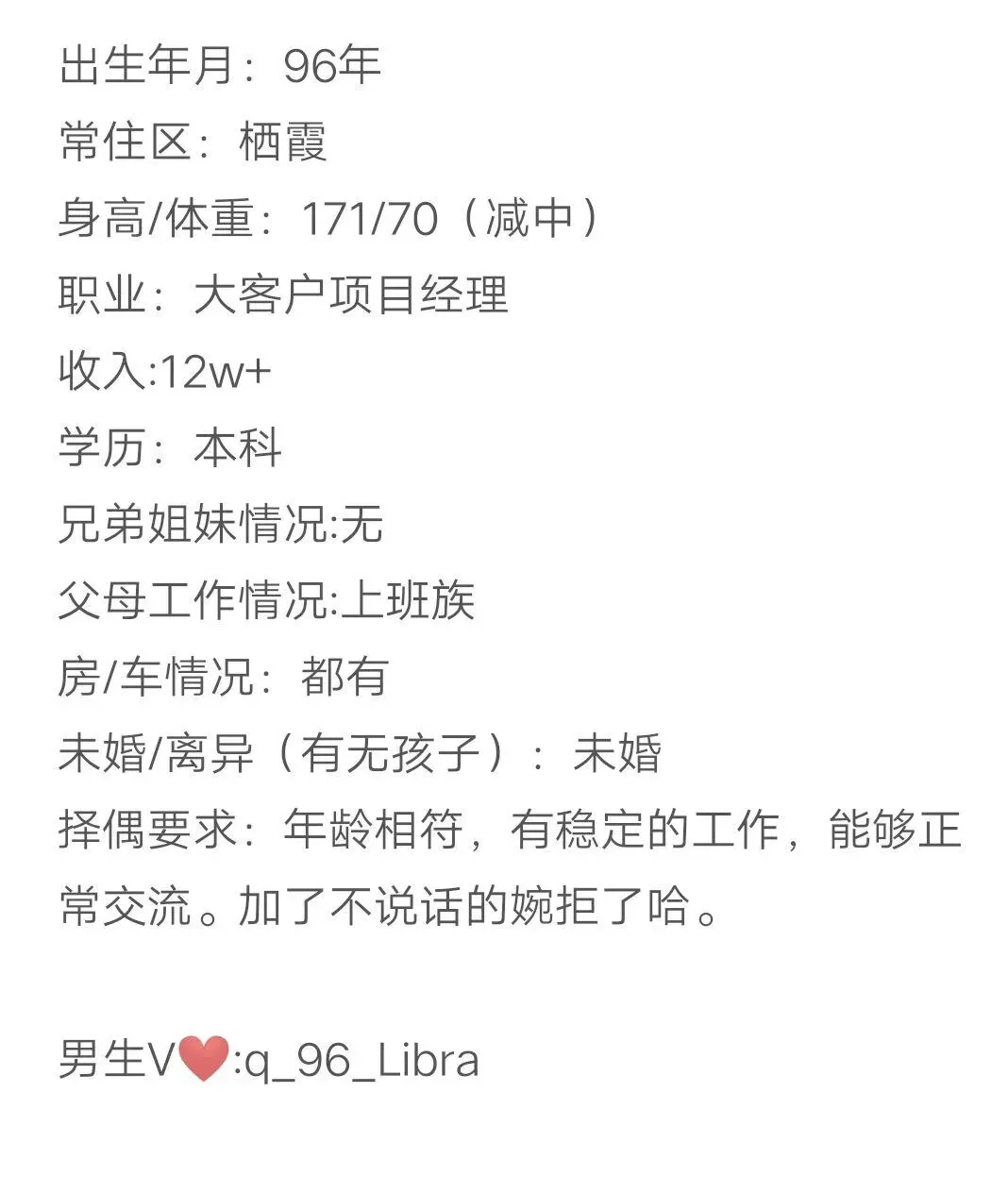 ⑤、【南京月老爷爷牵线(4866)】女,92年,身高162,目前单身,有房,南京浦口人,想找个有独立婚房、年入不低于18万的男友。